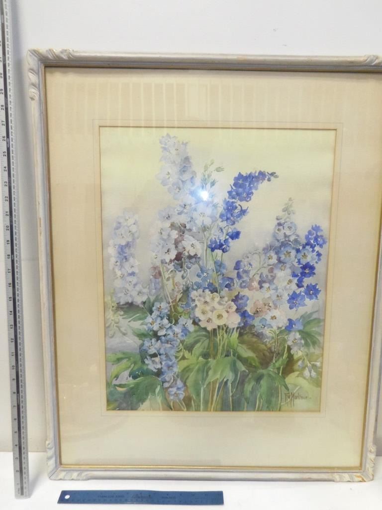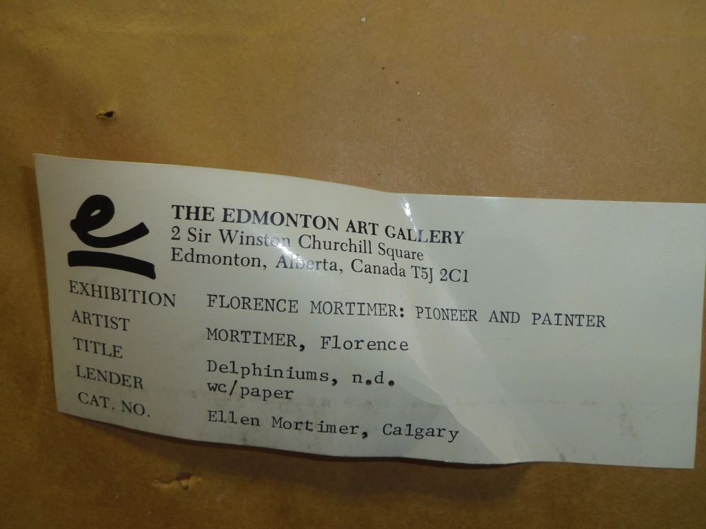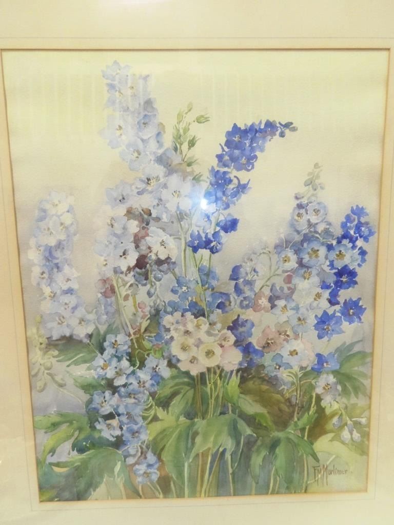 "Delphinium, no date" Watercolor on Paper 53.7 x 41.9 cm Florence Mortimer was born in Wakkerstroon, South Africa. Mortimer moved to England with