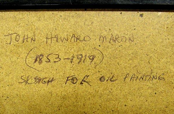 Framed Original Sketch for an Oil Painting by John Howard Martin (1853-1919). Visual measures approx. 7''Hx9''W. SHI $20.
