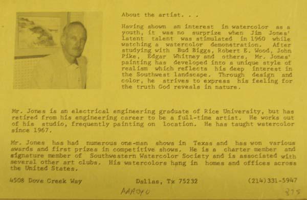 Original South West Framed Watercolor By Jim Jones. Visual measures approx. 10 1/2" x 14 1/2". Buyers Pay Actual Shipping and Handling Charges(see terms and conditions for more information).