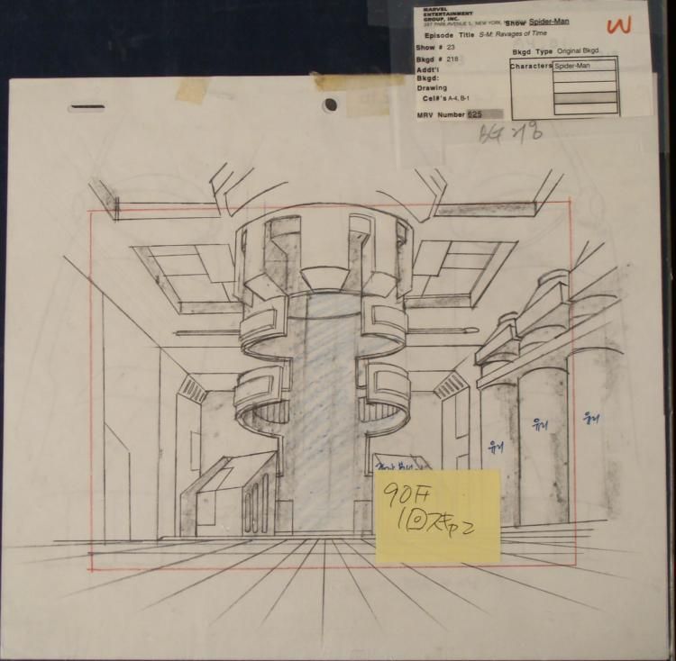 Spider Man is a beast Original Drawing Overall Size of Drawing: 9 1/2" x 10 1/2" Very good Condition This is an original hand-drawn set-up used in the production of an episode of Spider-Man titled "Ravages of Times." Traditional animation is a multi-step process which includes various types of art techniques. Drawings are a key part of the process, in which the animator creates the design and movement of the characters. Drawings are then transferred onto acetate cels (by hand-inking and/or photo copying) to create a production cel, which is then hand painted on the back side, using paint colors chosen and approved by the creator of the series. The drawing has a protective cover on it. The drawing comes with a Certificate of Authenticity.