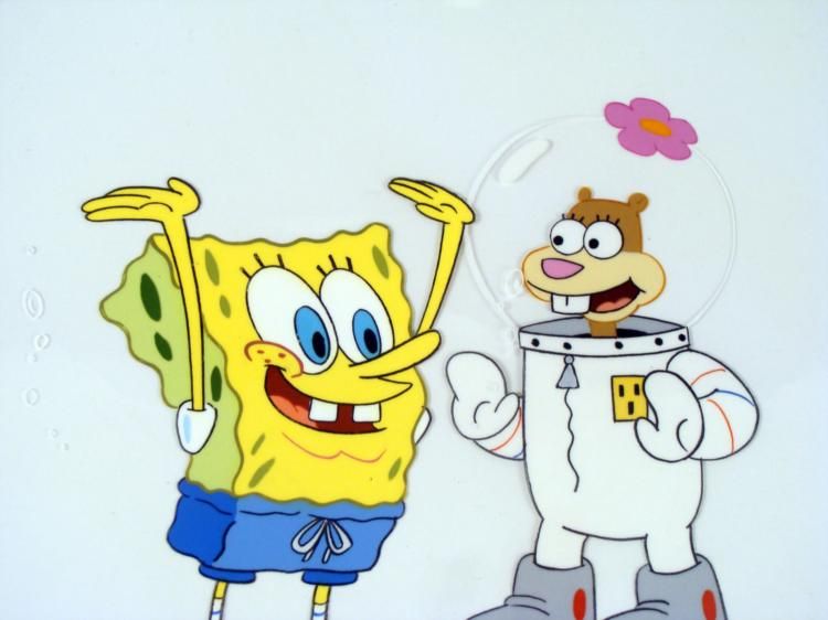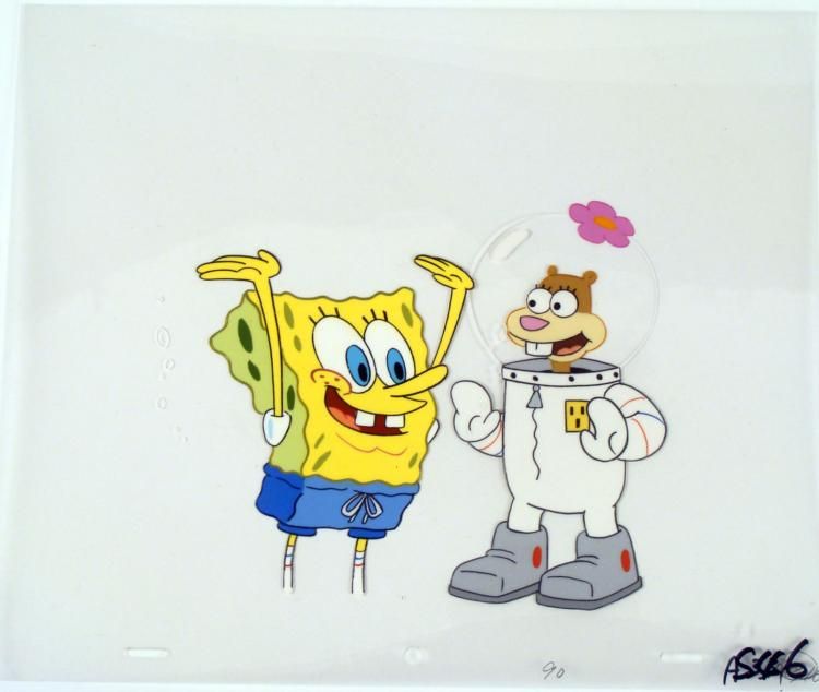 Normal 0 false false false MicrosoftInternetExplorer4 /* Style Definitions */ table.MsoNormalTable{mso-style-name:"Table Normal";mso-tstyle-rowband-size:0;mso-tstyle-colband-size:0;mso-style-noshow:yes;mso-style-parent:"";mso-padding-alt:0in 5.4pt 0in 5.4pt;mso-para-margin:0in;mso-para-margin-bottom:.0001pt;mso-pagination:widow-orphan;font-size:10.0pt;font-family:"Times New Roman";mso-ansi-language:#0400;mso-fareast-language:#0400;mso-bidi-language:#0400;}This original animation cel is from the Nickelodeon TV showSpongeBob Squarepants. The story takes place under the deep blue seain Bikini Bottom, where SpongeBob resides. SpongeBob, who is a yellow,porous sponge, is your typical happy-go-lucky character, as he is alwayscheerful and enjoys making people laugh. Patrick Star, SpongeBob's neighbor whois a starfish, is your average children's show idiot, as he boasts knowingnothing and is often getting himself into ridiculous situations. Between the homesof these two lies the home of the miserable Squidward, a squid, who is knownfor being grouchy and playing tricks on SpongeBob and Patrick. Both SpongeBoband Squidward work at the Krusty Krab, a fast food business run by the greedymoney-loving Mr. Krabs, a crab, the arch rival of the evil, possiblymisunderstood, Plankton. Another neighbor, Sandy Cheeks, an athletic squirrelwho normally wears an astronaut's space suit, was introduced in "Tea atthe Treedome." She spends most of her time inventing andexperimenting. * SANDY, you're back!!! Welcome home, I missed you very much!! * Original Production Animated Cel Overall Size of Cel: 10 1/2" x 12 1/2" Excellent ConditionThis is an original hand-painted cel set-up used in the productionof an episode of "SpongeBob SquarePants." Each one-of-a-kind set-uprepresents a slight change in position of the characters. When individuallyphotographed and projected in rapid succession, the images appear to move. * To create production cels, the original animator's drawing is transferred ontoan acetate cel (by hand-inking and/or photo copying). The cel is thenhand-painted on the reverse side. * The cel is ready to be matted andframed. The animator's notations are atthe bottom of the cel. The cel is mutli-layered, first is Spongebob and next is Sandy. * *