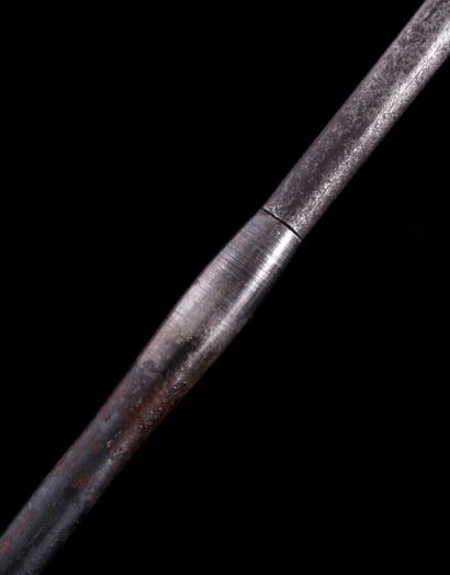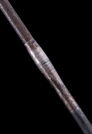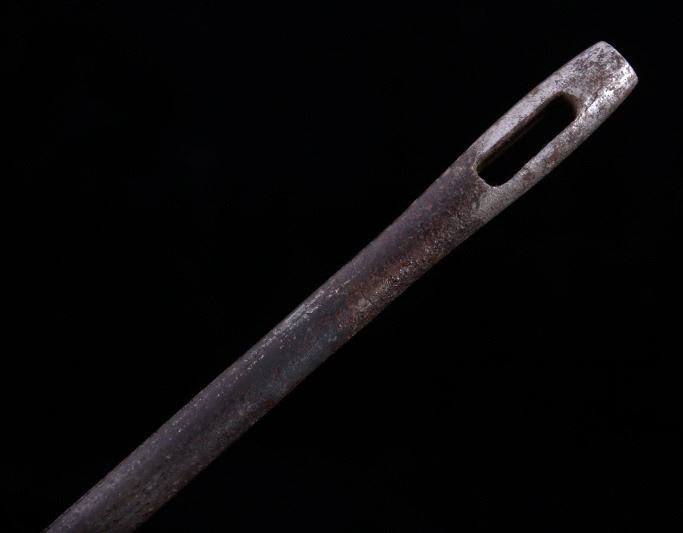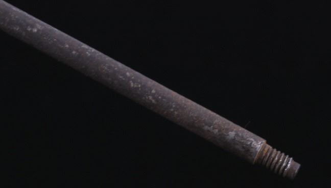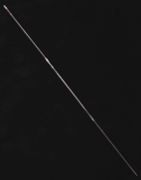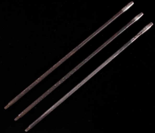This is an original three-piece cleaning rod for the famed U.S. issue .45-70 caliber Trapdoor Springfield Carbine. These rods were stored in the butt stock through a sliding trap in the butt plate. Almost always these seem to be missing and are hard to replace. Slotted end for cleaning the bore with the threaded end allowing attachment for a “stuck case” remover. This is an essential Indian Wars accouterment. Nice aged appearance. When unscrewed, and grouped, the rods measure 8 3/8" long. When assembled, the rod measures 24 1/4" long.