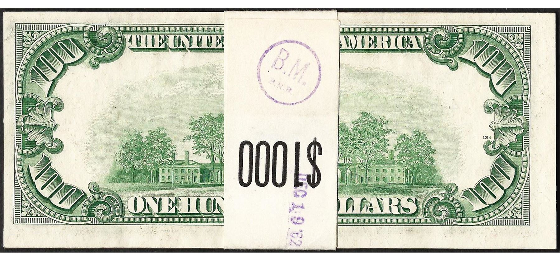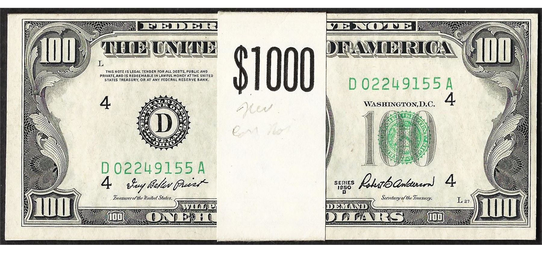 One Original Strap of (10) 1950B $100 Federal Reserve Notes Cleveland.