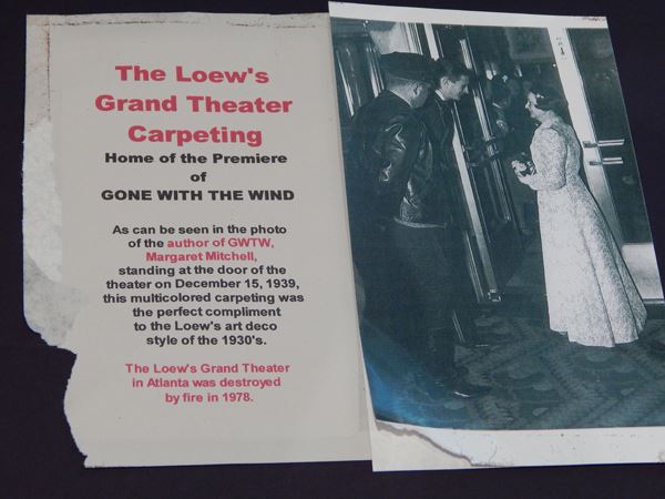 You are bidding on an original swatch of carpet from the Loew's Grand Theater, home to the premiere of "Gone with the Wind." This item comes with pictured documentation.
