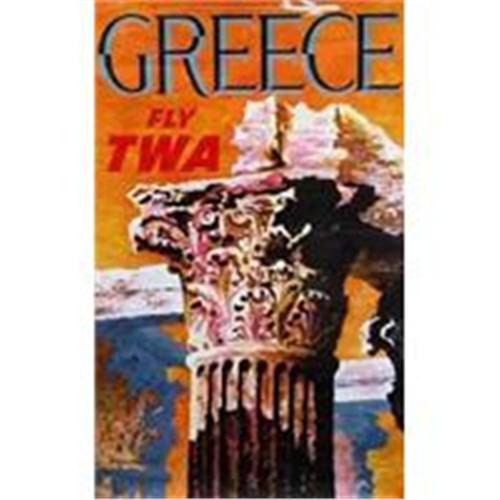 Original TWA poster by Klein. TWA - Greece Columns. 40 x 25" on paper. Certificate of Authenticity is provided.