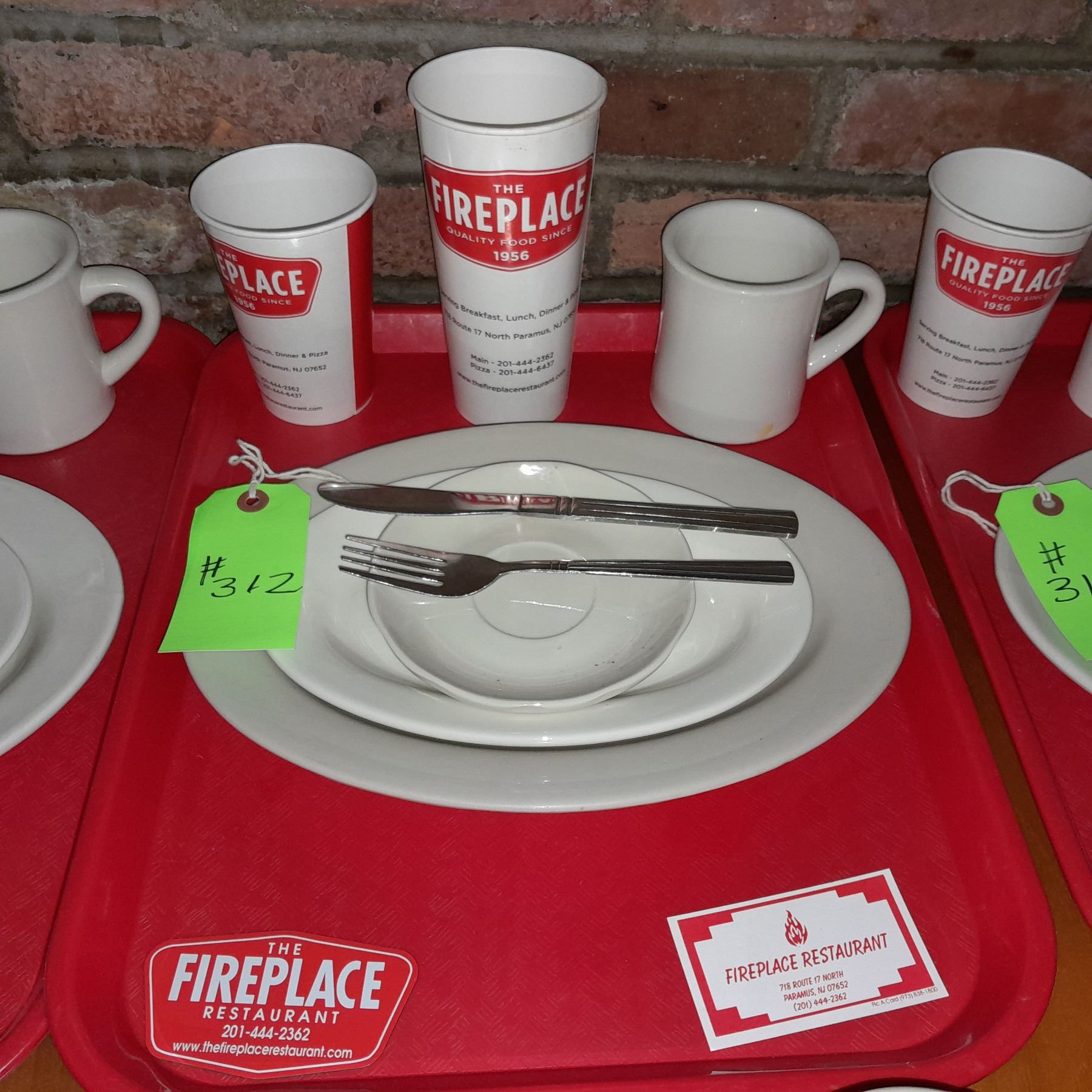 Original The Fireplace Restaurant - Place Seating W/ Tray, 2 Cups, 4 China Pieces, 2 Flatware, 1 Magnet, & 1 Business Card