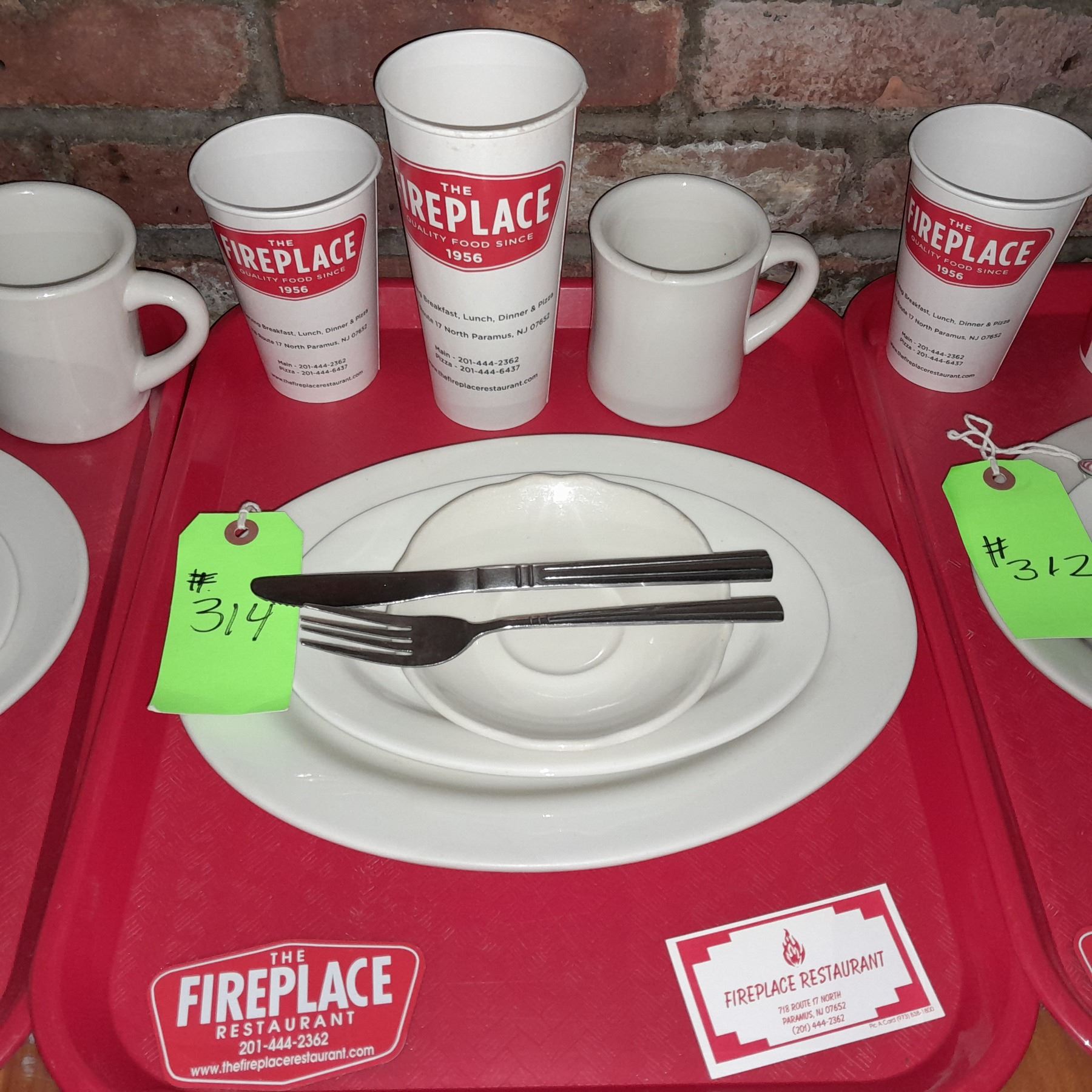 Original The Fireplace Restaurant - Place Seating W/ Tray, 2 Cups, 4 China Pieces, 2 Flatware, 1 Magnet, & 1 Business Card