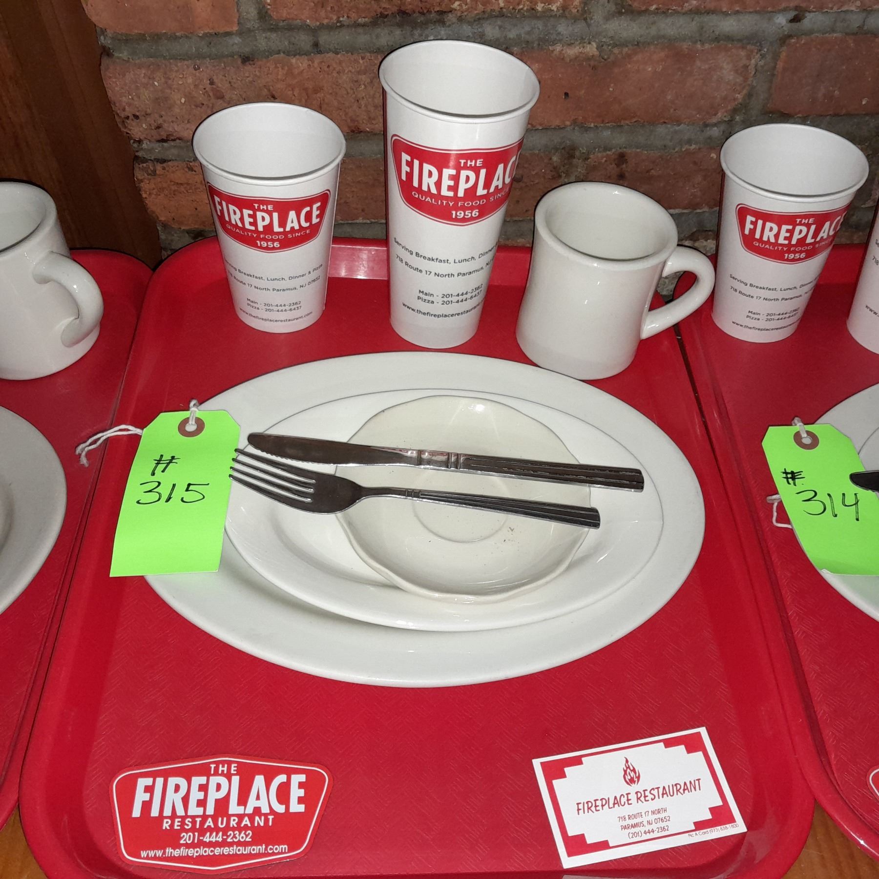 Original The Fireplace Restaurant - Place Seating W/ Tray, 2 Cups, 4 China Pieces, 2 Flatware, 1 Magnet, & 1 Business Card