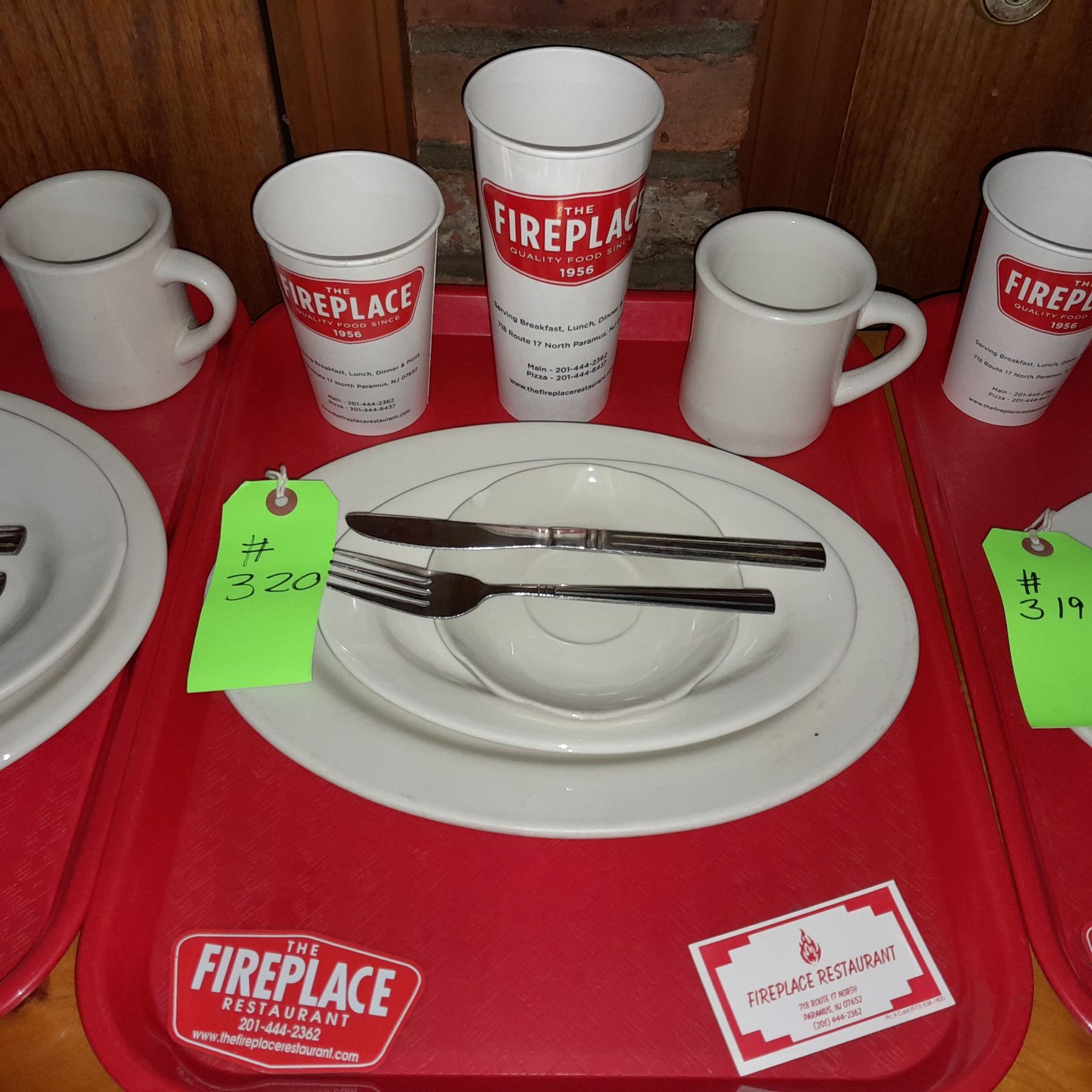 Original The Fireplace Restaurant - Place Seating W/ Tray, 2 Cups, 4 China Pieces, 2 Flatware, 1 Magnet, & 1 Business Card