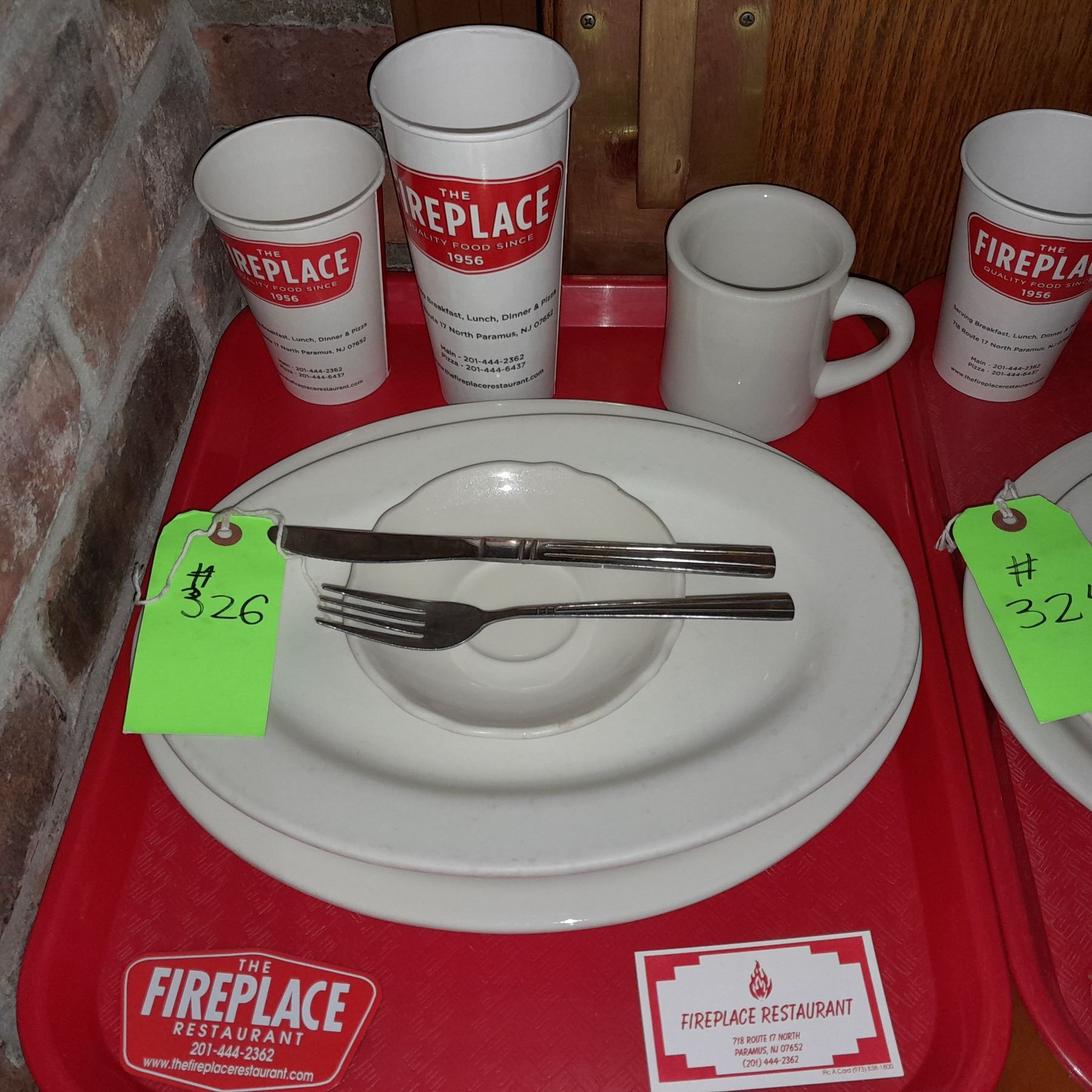 Original The Fireplace Restaurant - Place Seating W/ Tray, 2 Cups, 4 China Pieces, 2 Flatware, 1 Magnet, & 1 Business Card