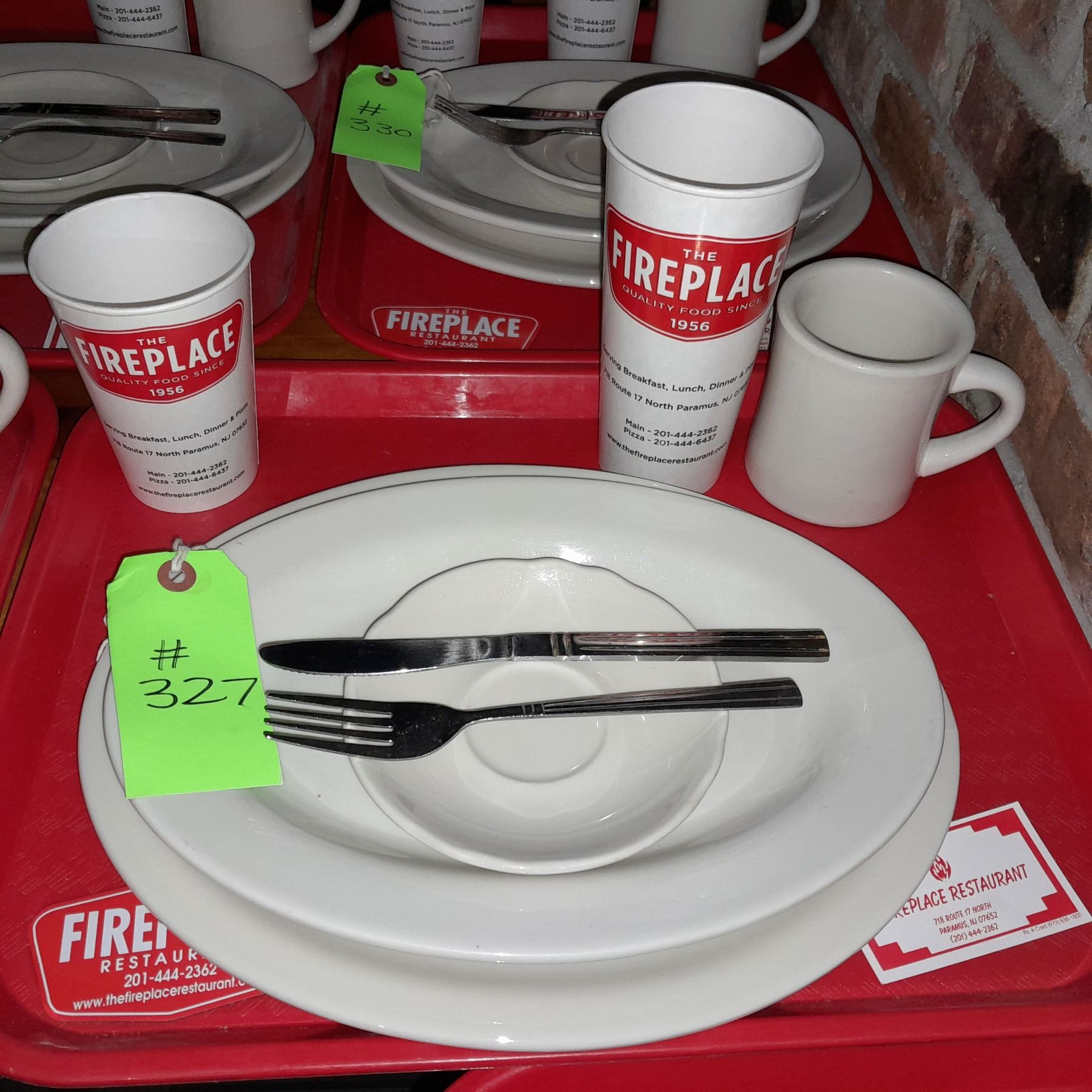 Original The Fireplace Restaurant - Place Seating W/ Tray, 2 Cups, 4 China Pieces, 2 Flatware, 1 Magnet, & 1 Business Card