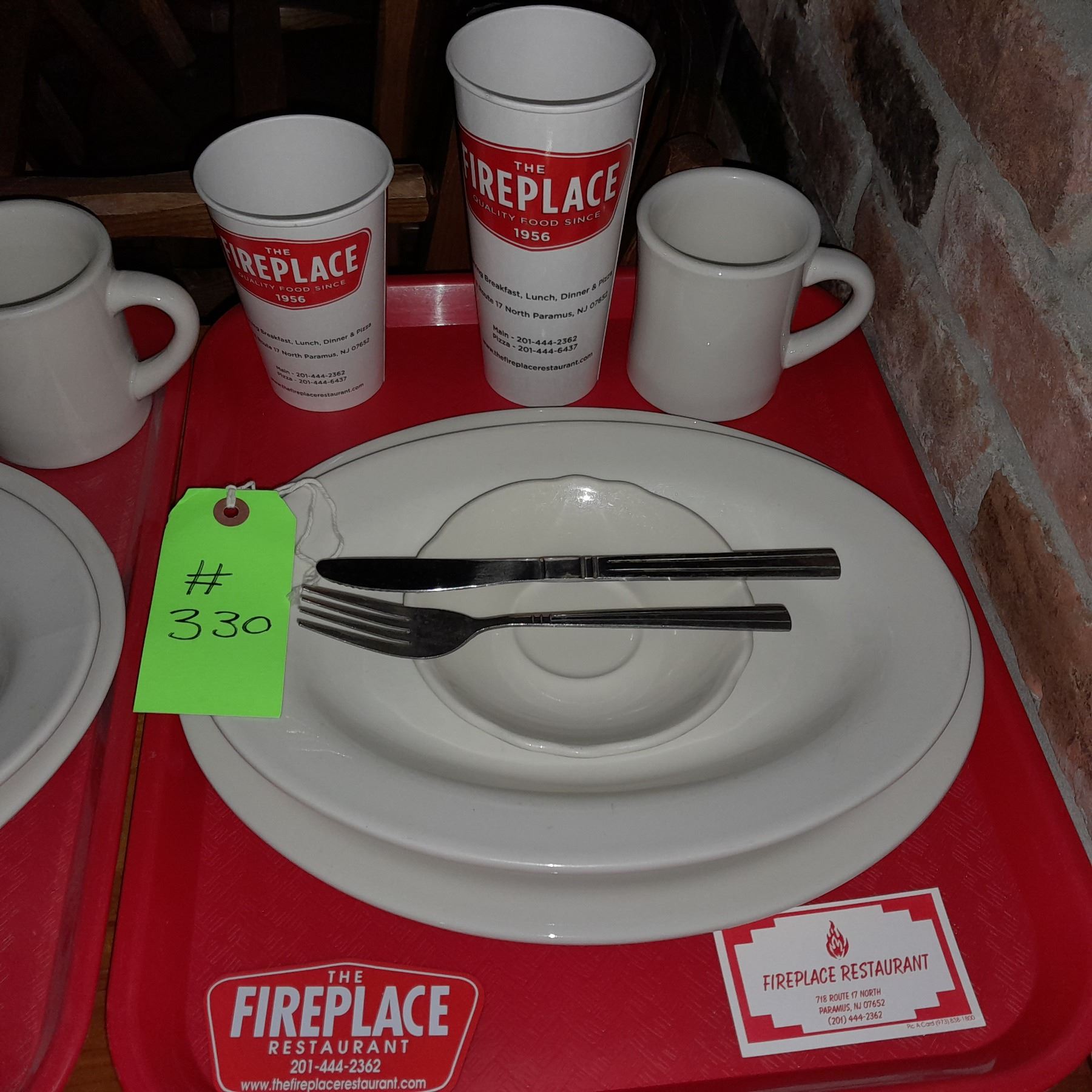 Original The Fireplace Restaurant - Place Seating W/ Tray, 2 Cups, 4 China Pieces, 2 Flatware, 1 Magnet, & 1 Business Card