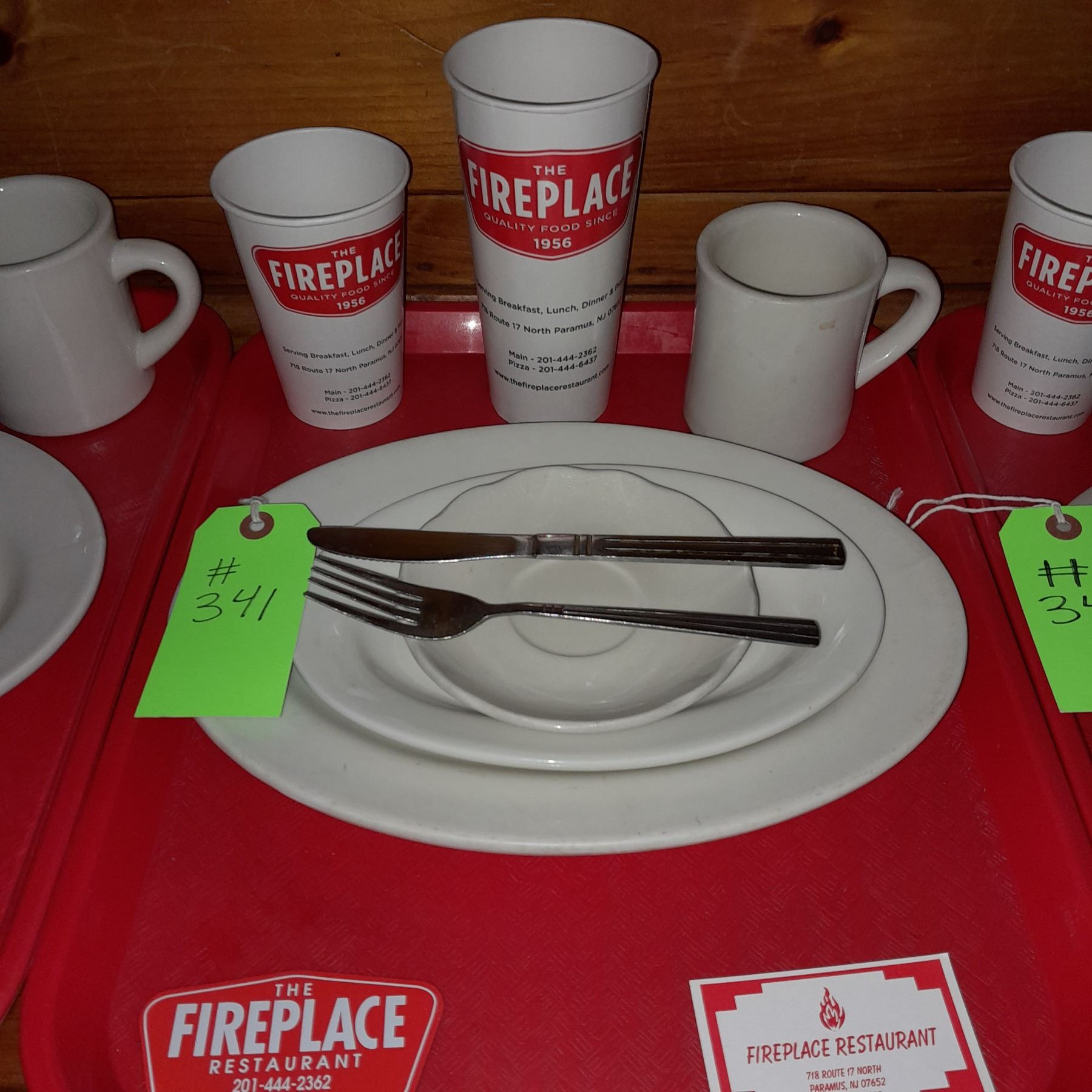 Original The Fireplace Restaurant - Place Seating W/ Tray, 2 Cups, 4 China Pieces, 2 Flatware, 1 Magnet, & 1 Business Card