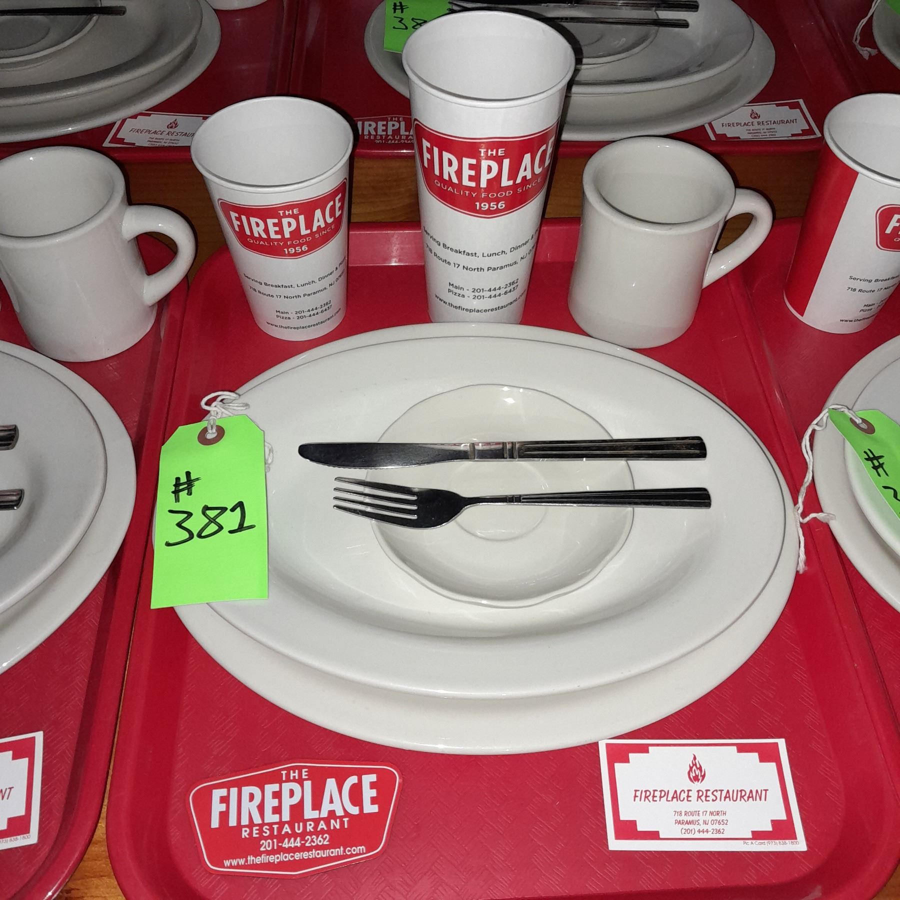 Original The Fireplace Restaurant - Place Seating W/ Tray, 2 Cups, 4 China Pieces, 2 Flatware, 1 Magnet, & 1 Business Card
