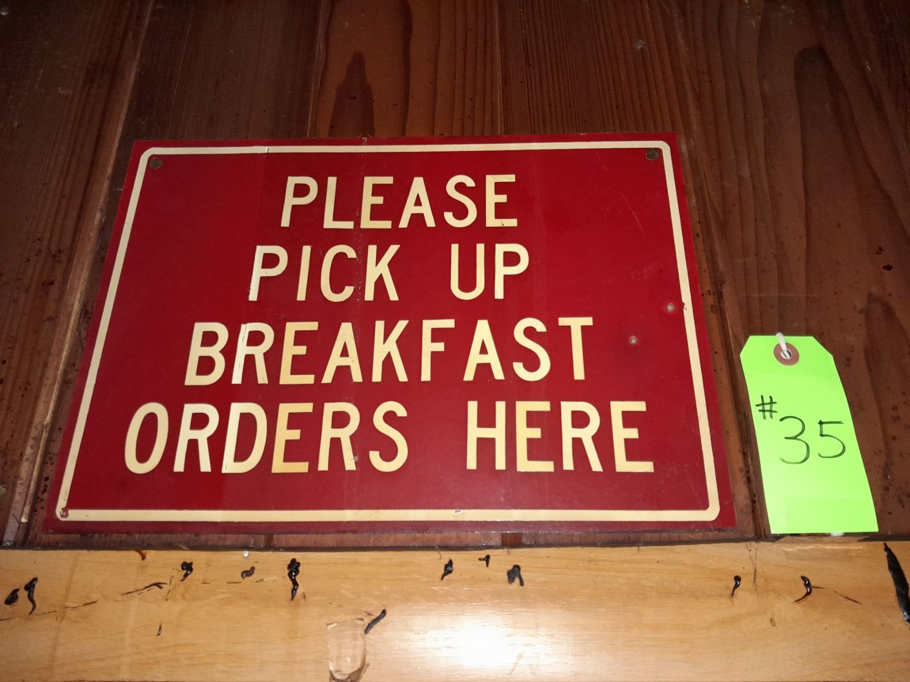 Original The Fireplace Restaurant - Please Pick Up Breakfast Orders Here" Sign