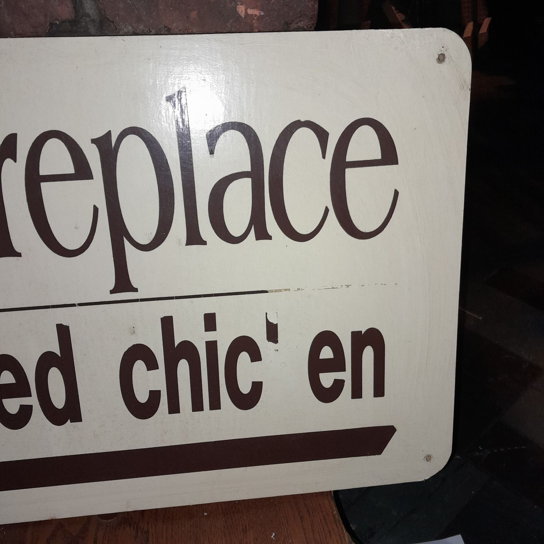 Original The Fireplace Restaurant - SUPER RARE Fired Chicken Handmade Wooden Sign