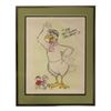 (Walt Disney Studios, 1979) An original drawing by Chuck Harvey of Bernard, Miss Bianca, and Orville from The Rescuers. Harvey worked as a Character Animator on the feature film, as well as on films such as The Little Mermaid and Pete's Dragon. Created in ink and marker on art paper, the image measures 11"x9" in the 14.5"x12.25" frame. The drawing has not been inspected out of the frame but appears to be in good condition with several visible crease-marks and a spot of discoloration on the mid-left side. Harvey personalized the drawing "To Alan" above his signature in the top-right corner.