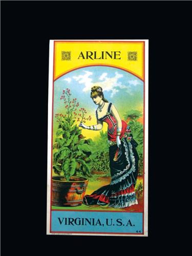 Original Tobacco Label for Arline tobacco, Virginia, USA. Mint condition. 6 1/2 X 13 inches.