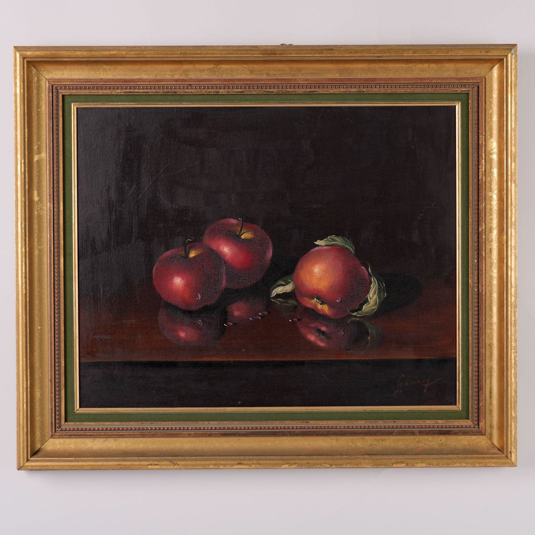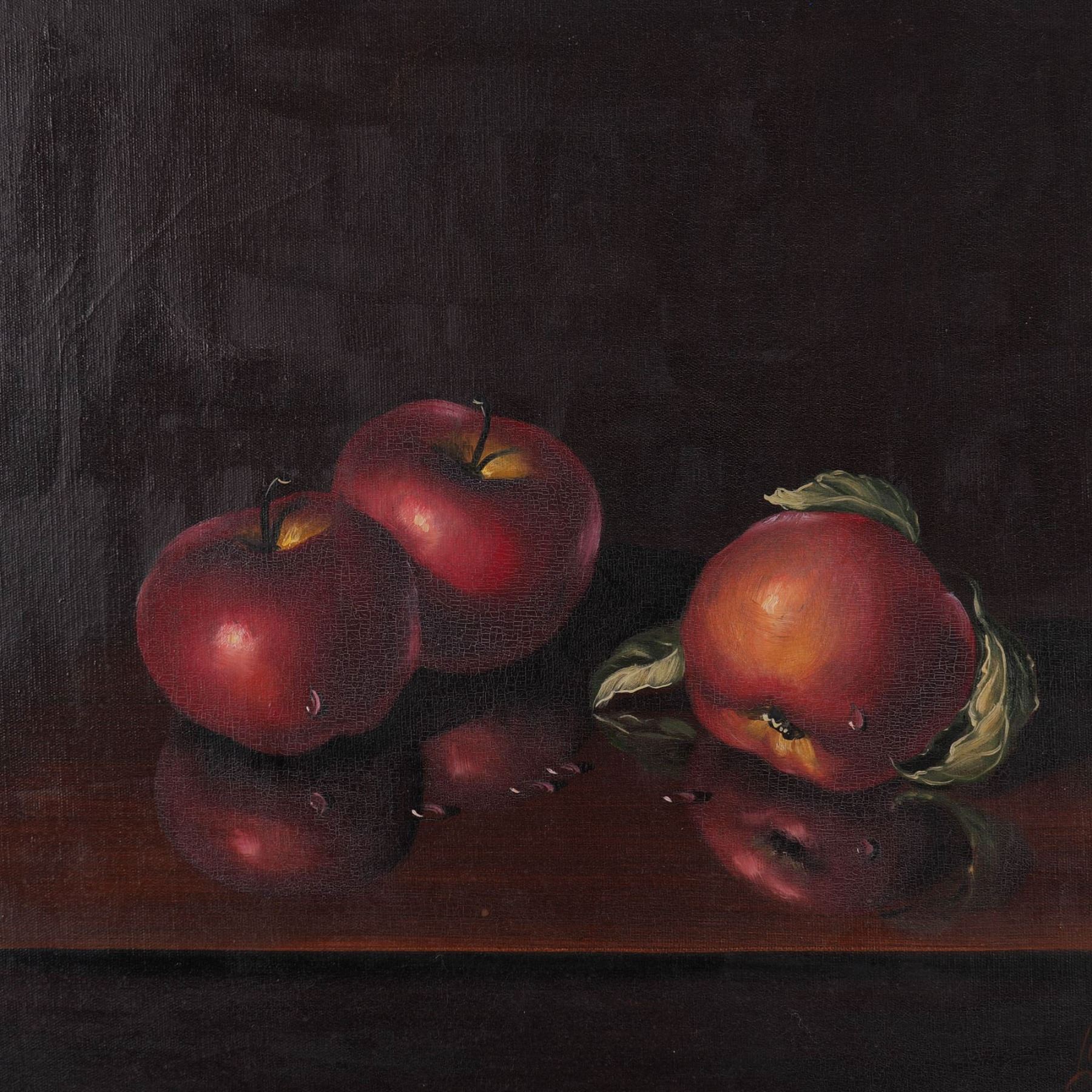 Original Trompe-L'oeil on Canvas, Apples Still Life, Signed