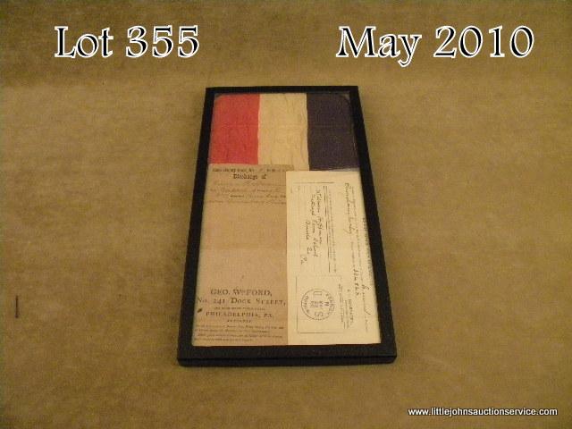 Original U.S. Pension Office Discharge for William Hoffman, Corporal of Company C, 2nd Regiment, Pennsylvania Cavalry along with a heavy paper sleeve that contained this discharge and is identified to Hoffman and noted to have been in“Extra Bounty Book No. 1, Page 456”; also accompanied by a small approx. 5” x 7” red, white and blue “flag”; all contained in a riker case. Would be interesting to further research Hoffman’s service record. Est.: $75-$150.
