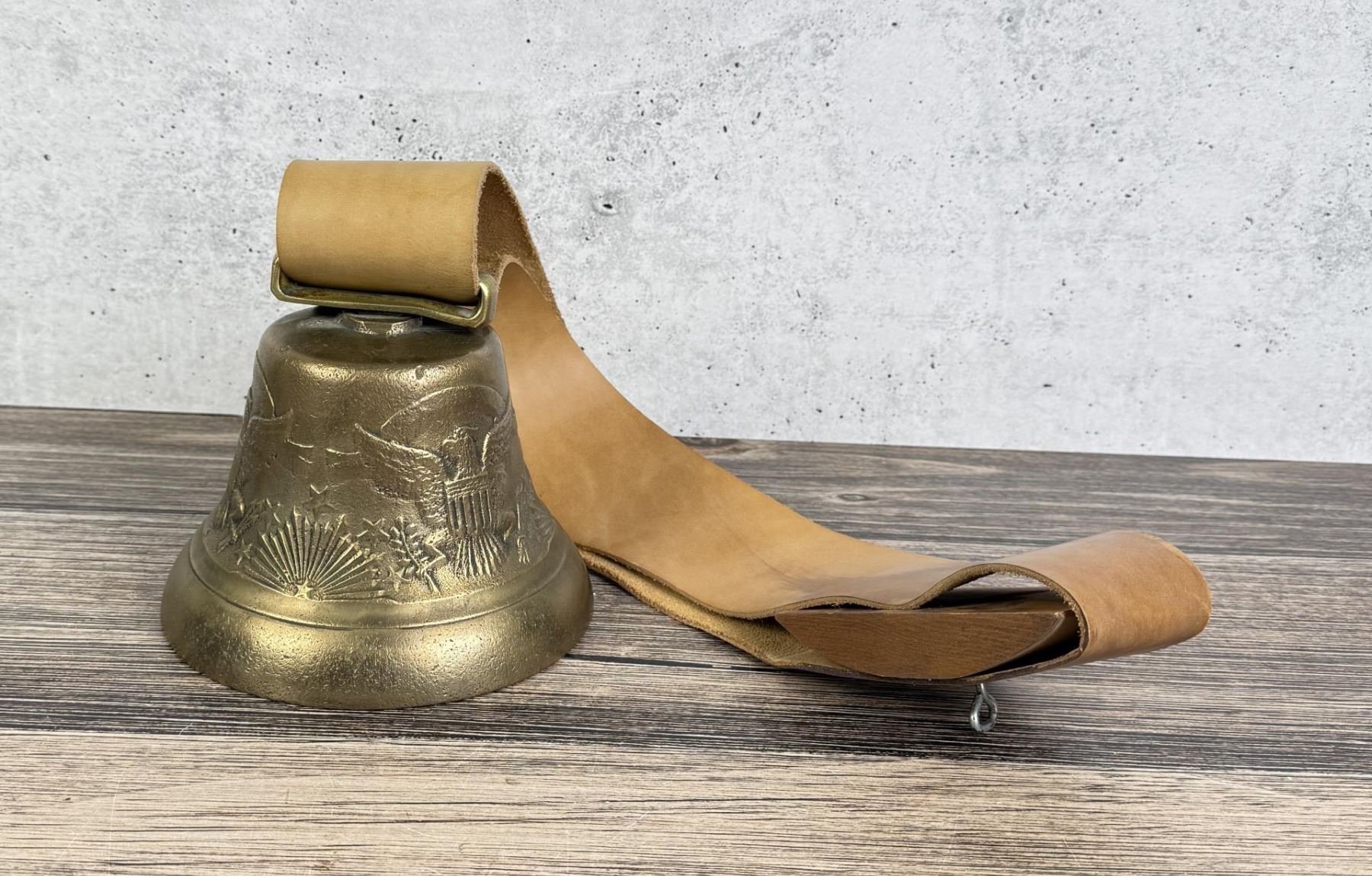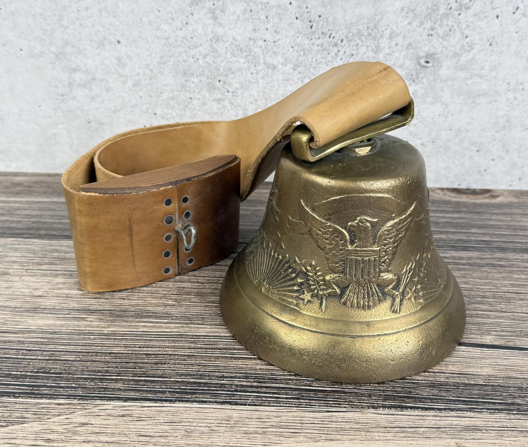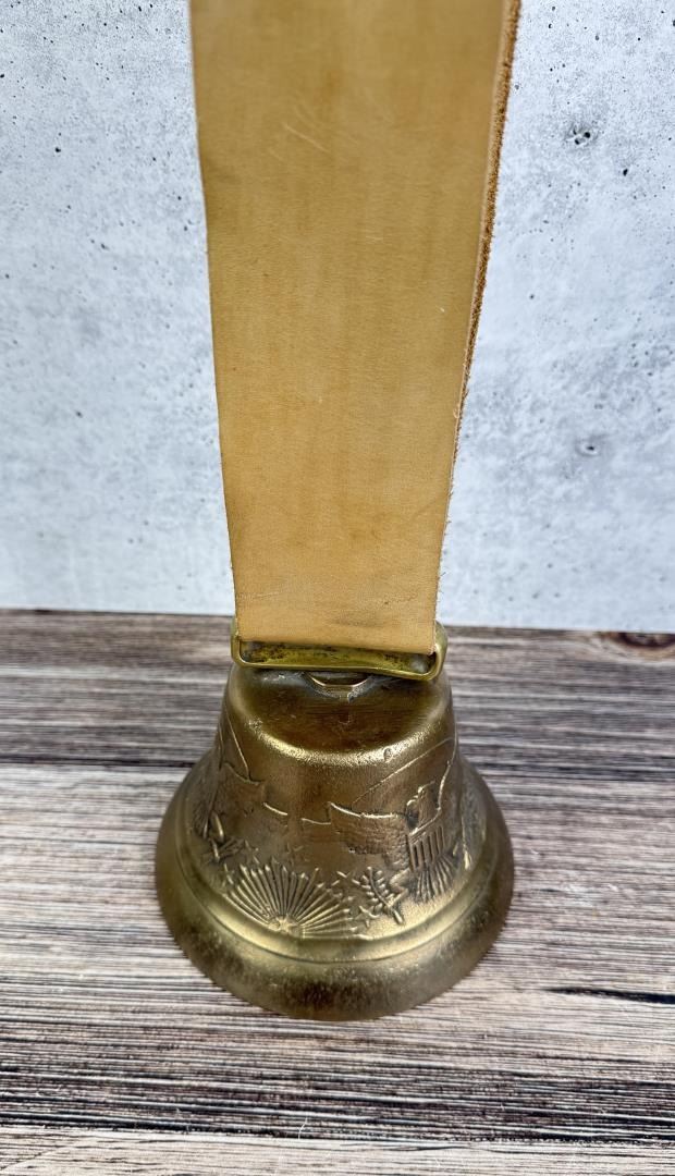 Very nice old bell. Complete with leather strap. 5 3/4" Diameter. The United States Camel Corps was a mid-19th-century experiment by the United States Army in using camels as pack animals in the Southwestern United States. While the camels proved to be hardy and well suited to travel through the region, the Army declined to adopt them for military use. The Civil War interfered with the experiment and it was eventually abandoned; the animals were sold at auction.