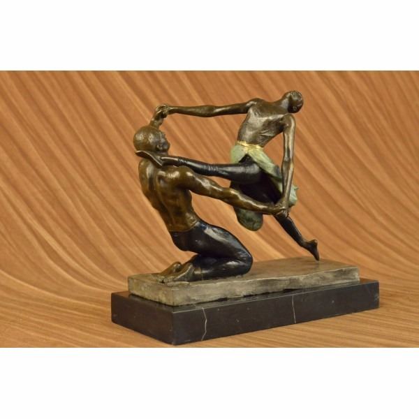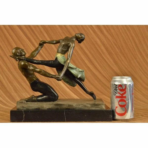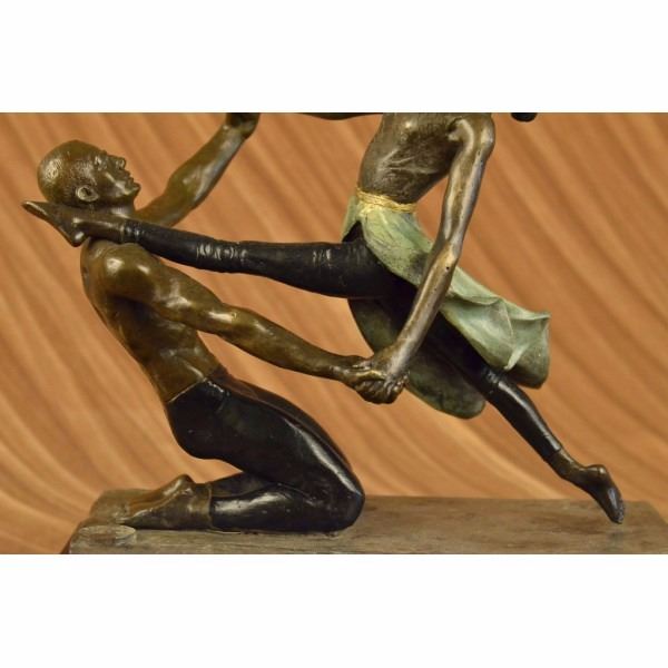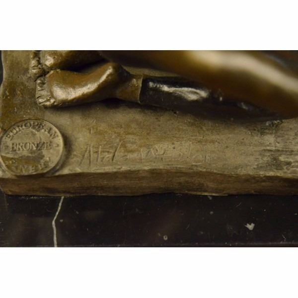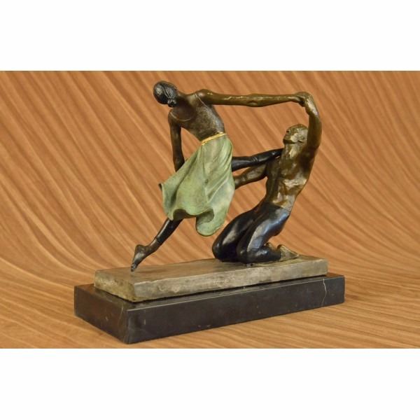 This sculpture is spectacular and divine to the last little detail. The strong male carries the female on his right shoulder without a sign of any struggle he lifts her whole body as he raises his arm higher. His other arm is aligned with her left leg which is lifted straight out in a stiff pose, while her other leg is bend at the knee to the side as her foot touches her left legs inner thigh. She is gracefully and elegantly leaning back from his arm, while she grabs on to his chest with her left hand since the other is raised up high. He look as though he is lifting a feather and he lifts his left foot a little. They are casted using the ancient old "Lost Wax Method" stained in brown patina. 100% handmade and 100% bronze, mounted atop a black marble base and signed by the artist Aldo Vitaleh. Condition: This sculpture is in perfect condition. Bronze Dimensions with Marble Base:Height 10" X Width 11" Marble Dimensions: 11" X 5" Height without base: 9" Weight : 15 LBS Inventory:60X3296506