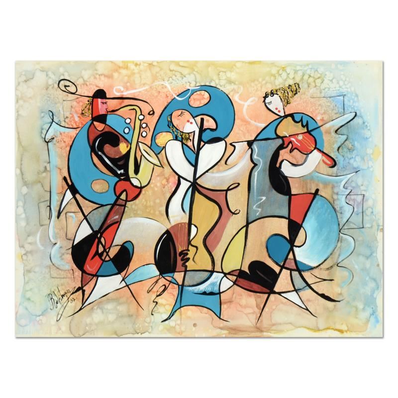 This is a mixed media original acrylic and watercolor painting on paper by Roshvan, hand signed by the artist. Includes Letter of Authenticity. Measure approx. 29" x 22" (image).
