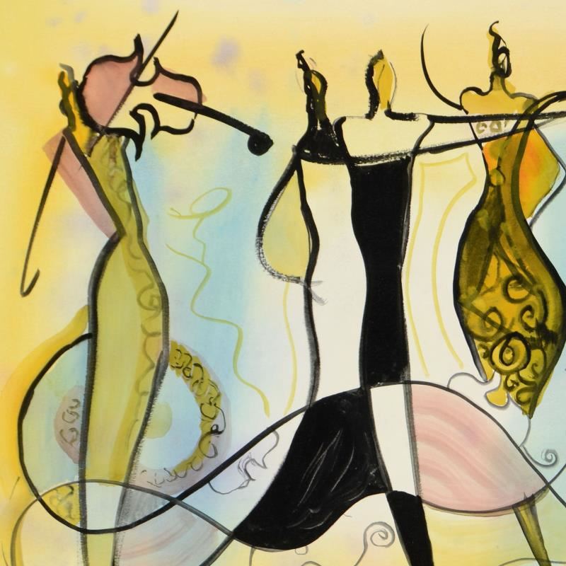 This is a mixed media original acrylic and watercolor painting on paper by Roshvan, hand signed by the artist. Includes Letter of Authenticity. Measure approx. 25" x 19" (image).
