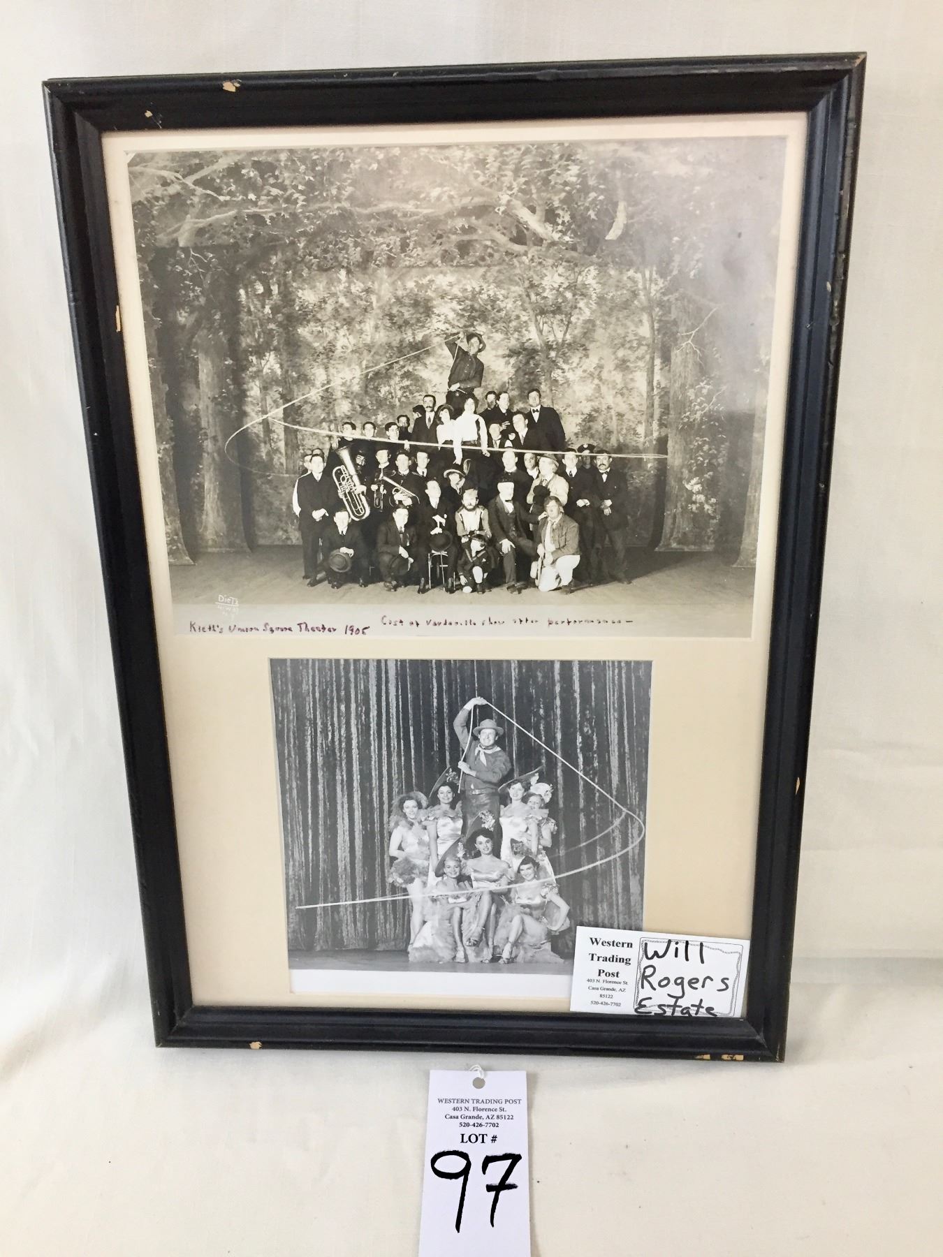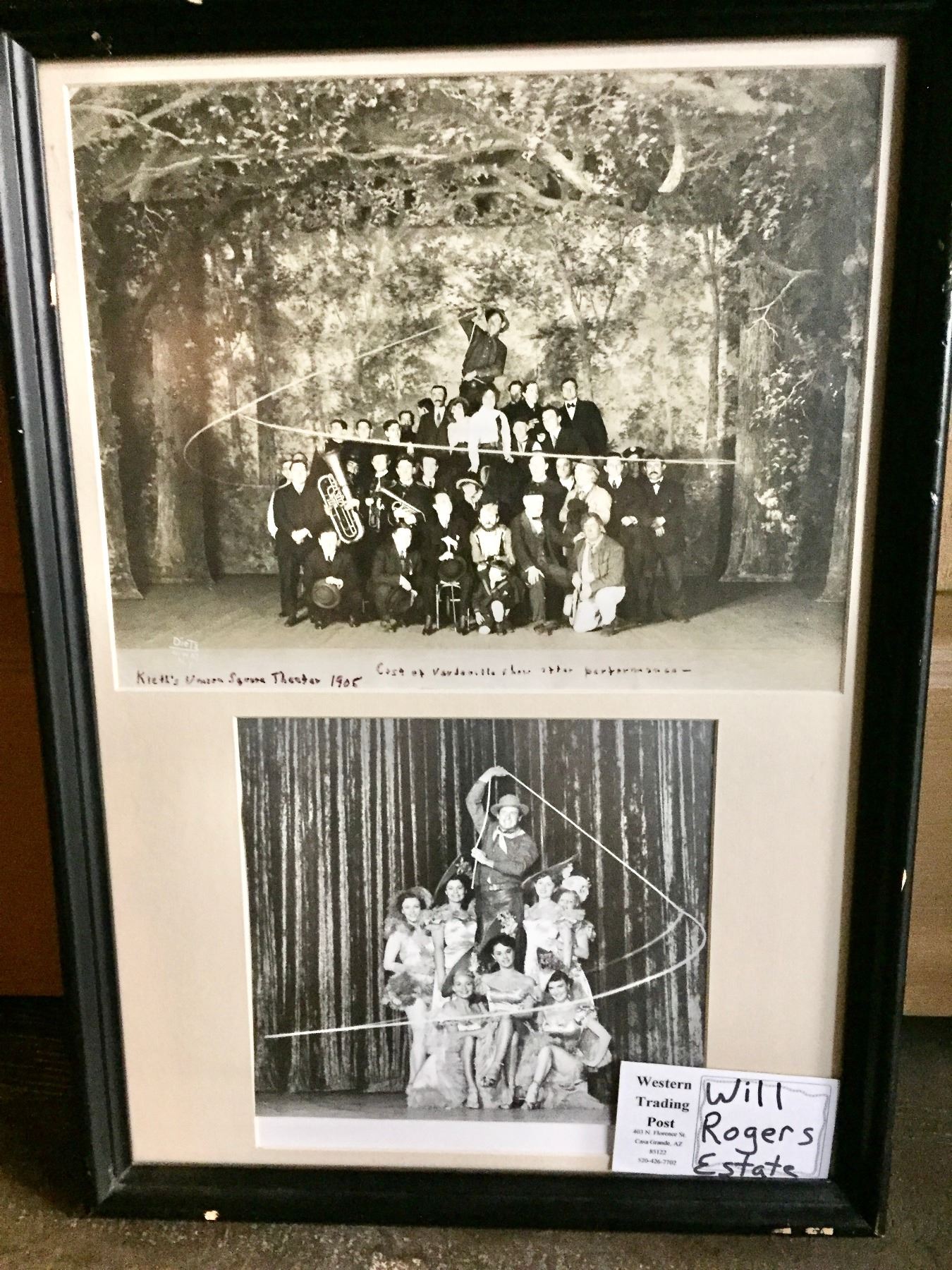 Description: For your consideration we offer for sale this unique image. The bottom photo is of Will Rogers Jr taken in the 1950s, recreating the famous photo of his father, which is on the top. The Top photo hung in the Will Rogers Museum in Oklahoma for a number of years, and was on loan from the family (noted as such on the reverse). Includes a signed and notarized statement that this came from the Will Rogers Jr. estate sale.                                                                                             Maker: Dietz.