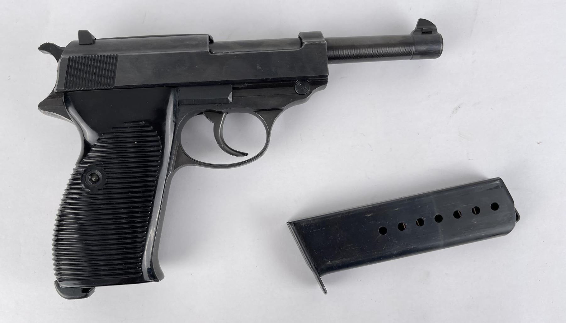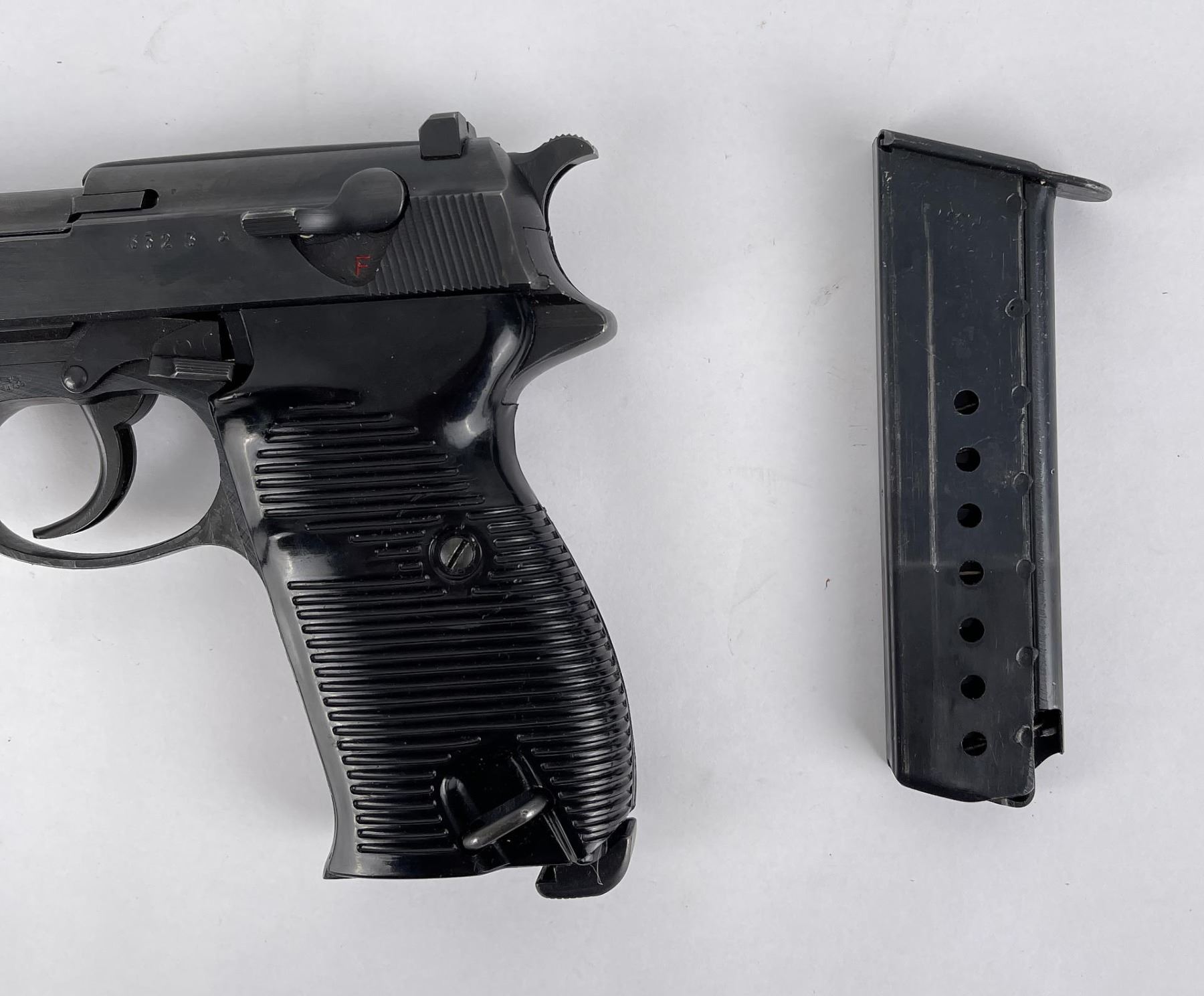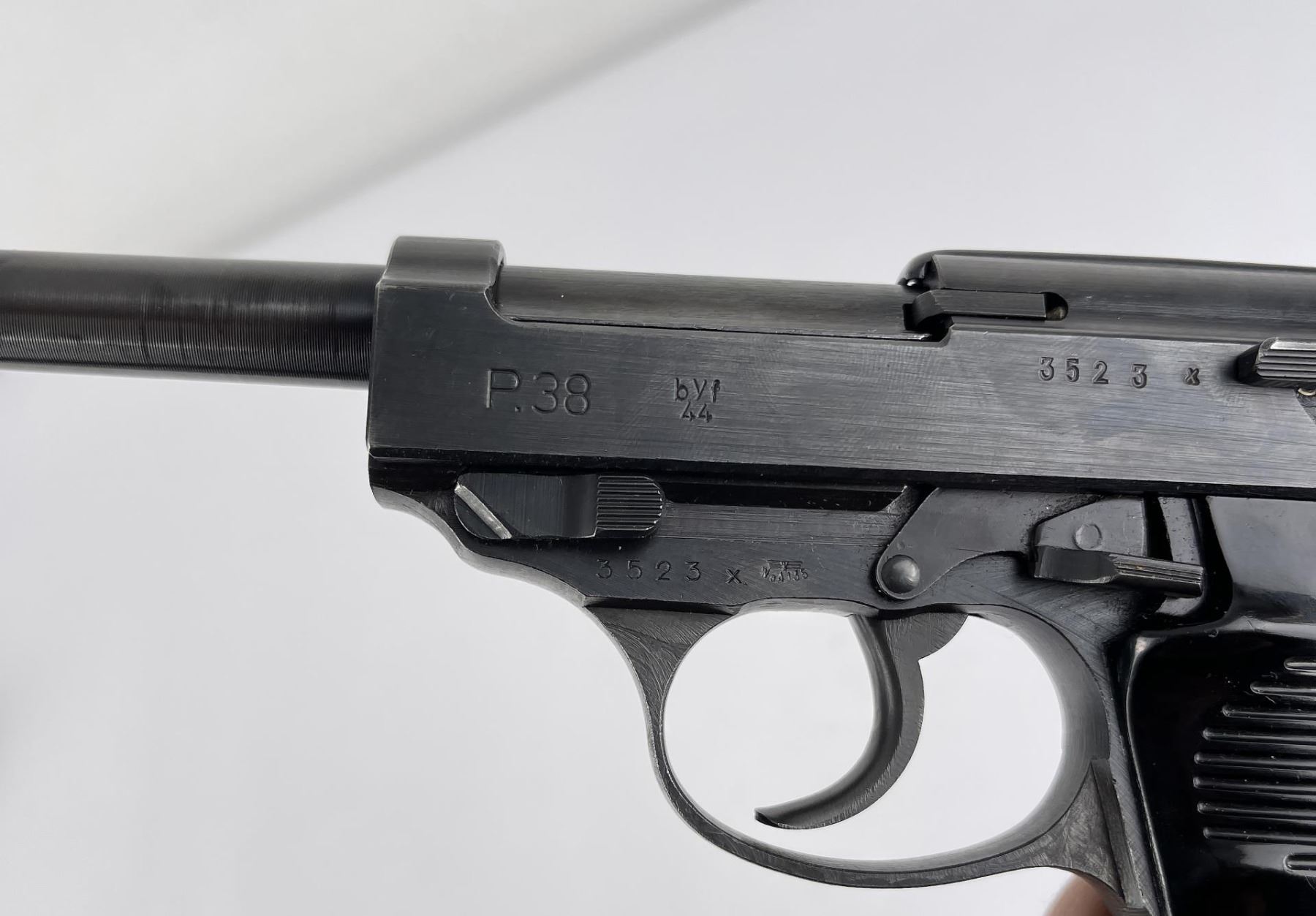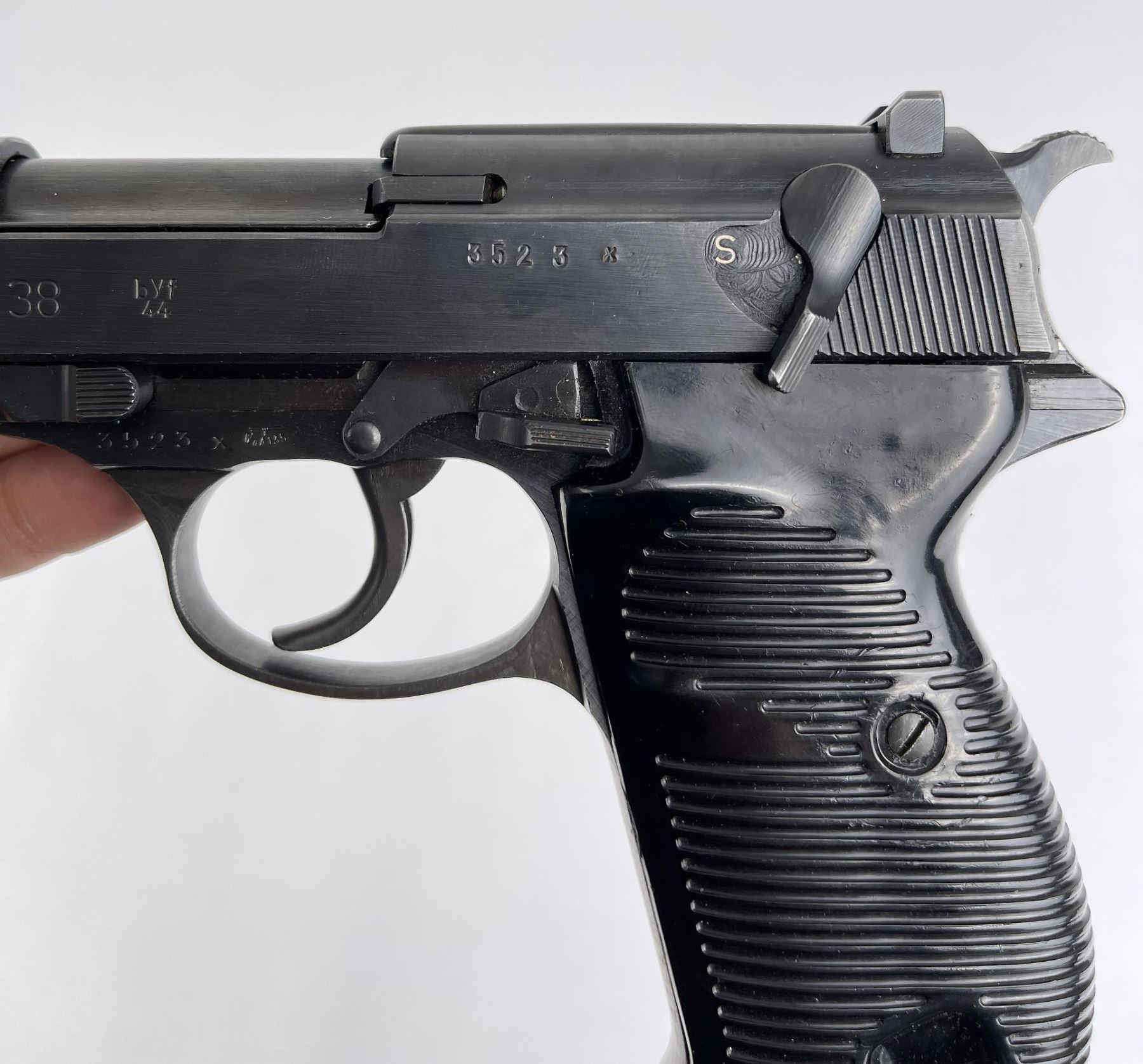 As nice as you will ever find. BYF44 code. No import marks. All original bluing. Matching holster. Requires FFL Transfer, C&R Not Accepted.