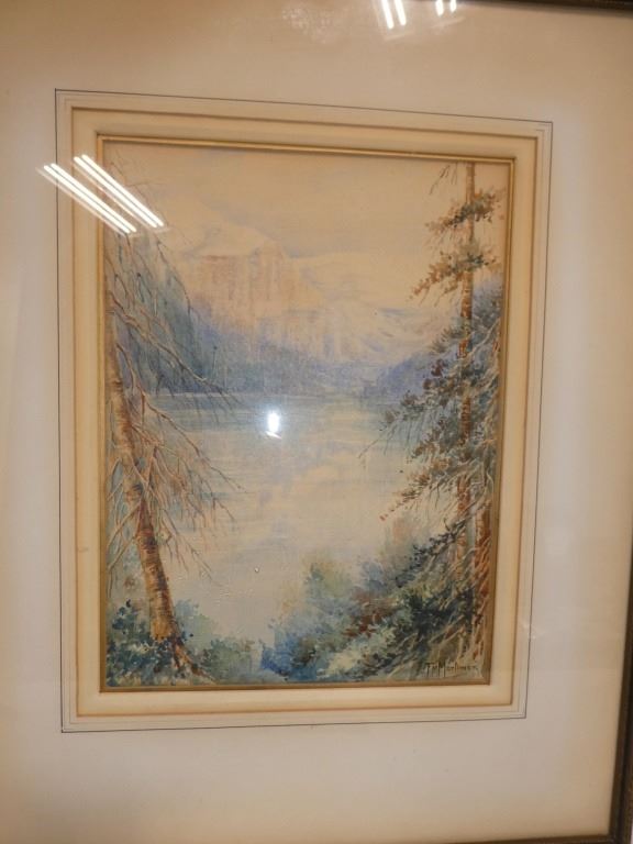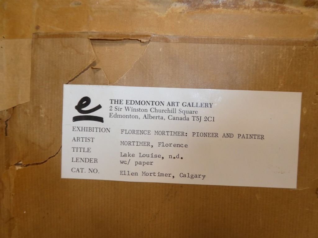 Lake Louise Florence Mortimer Florence Mortimer was born in Wakkerstroon, South Africa. Mortimer moved to England with her mother shortly after her birth. Mortimer started painting at the age of six, and her talent was immediately apparent. She attended Oldfield Lodge boarding School in Bath, England, where the Art Master, William Harbutt, the inventor of plasticine, noticed her artistic talent as well. He offered to let her live with them, so she could attend the prestigious, Government School of Art, in Bath, England. Here she won many accolades, for her exceptional miniature portrait paintings and overall artistic talent. After graduation, she was offered a position teaching art at a girl’s private school. Mortimer married her husband, Percy, in 1906, and they immigrated to Canada in 1910. They lived in Eastern Canada for a year, before moving out West. They followed the railway as it was being built, and Percy set up General Stores in towns along the railway line. The Mortimer’s settled for quite some time in Peace River, Alberta. In 1926, they moved to Edmonton, Alberta with their 3 children. It is here, that Mortimer started to teach again. Mortimer became a respected art teacher, a member of the Edmonton Art Club, as well as a member of the Alberta Society of Artists. Mortimer is known for her miniature works; however, she also created a few large oil paintings. In 1937, the Royal Canadian Academy exhibited one of her miniature portraits. Mortimer also won a national holiday card design contest put on by the Hudson’s Bay Company, for her painting, River Valley.