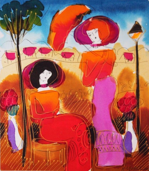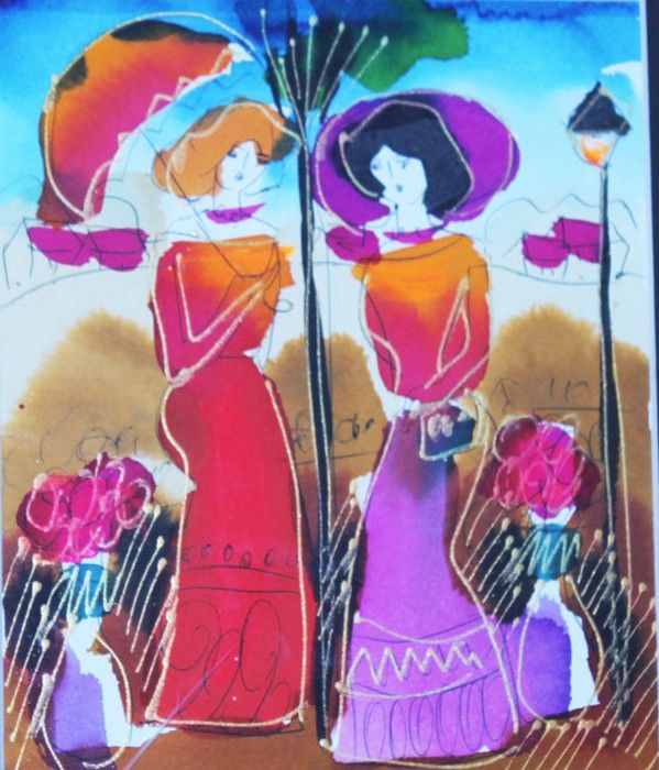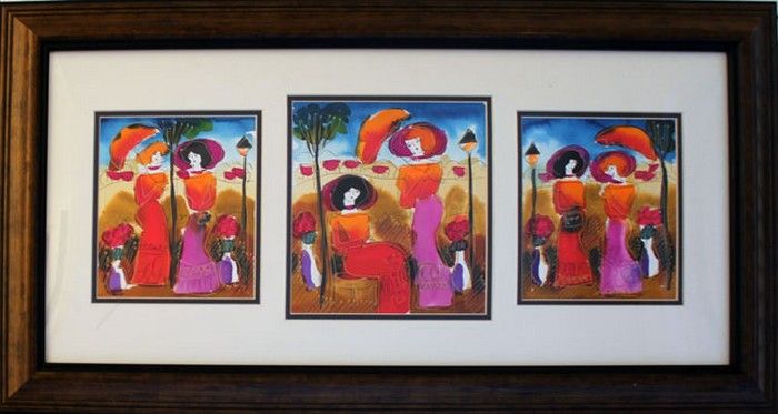 Hand Signed Original Watercolor on paper by Moshe Leider, titled "Bus Stop Rendevous". Hand Signed by the artist. Dimentions are approximately 18 X 33. Beautifully Museum Framed! Certificate of authenticity provided. Authentic guaranteed! CJRAP46300125