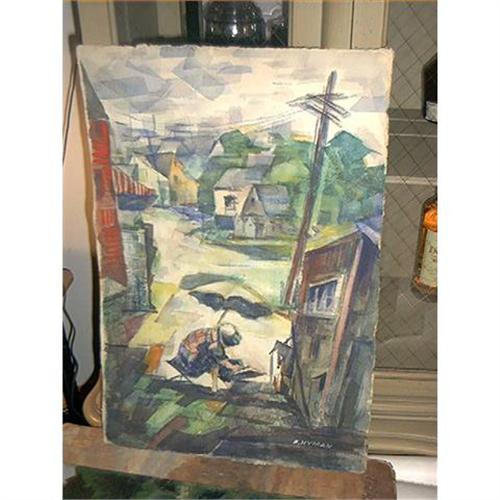 Original Watercolor on Board by F. Hyman. Painted in 1940 and signed by him. Needs a nice frame and it will grace any wall it hangs from. 1940s Piece</em></td>
