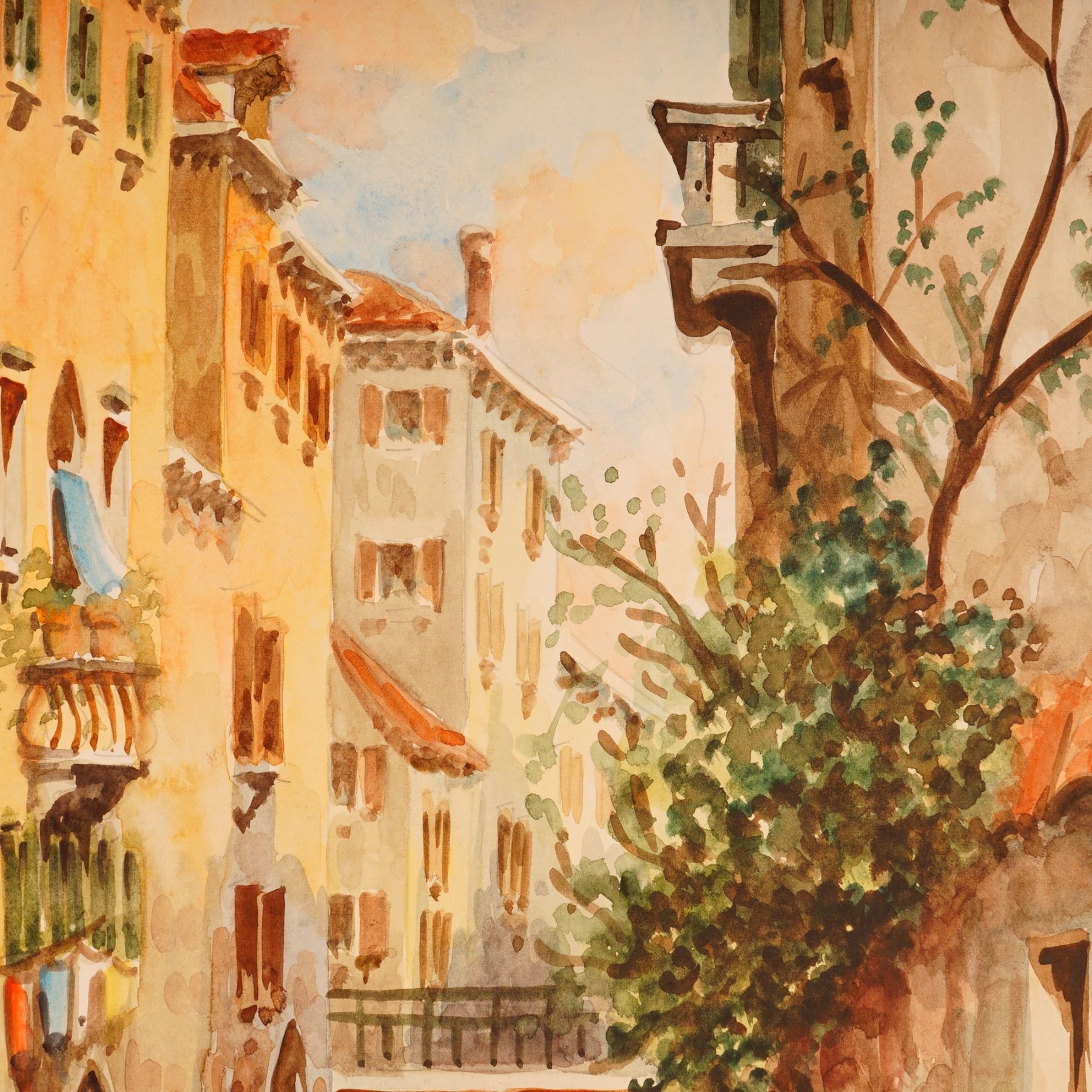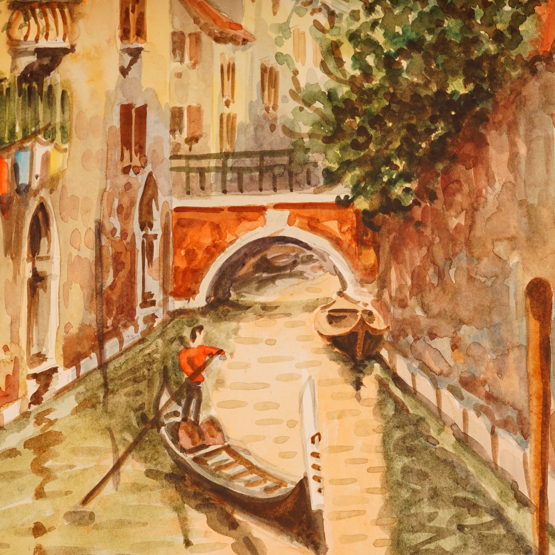 Original Watercolor on Paper Painting, Venetian Canal, Signed & Dated