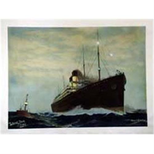 Rare Ship poster depicting the famous White Star. This is an original stone lithograph, in A condition on linen. Certificate of Authenticity is provided. Great collectible item.