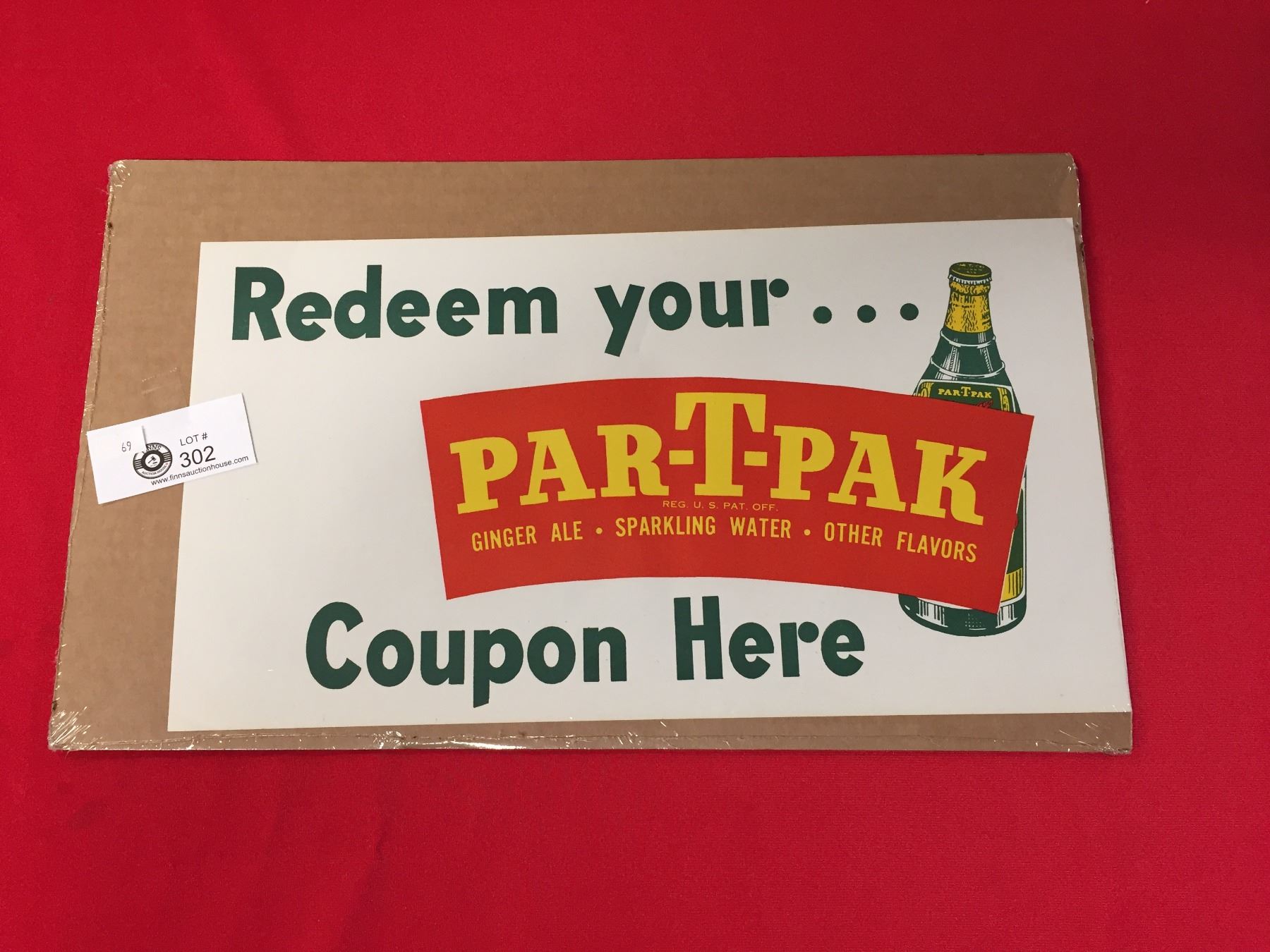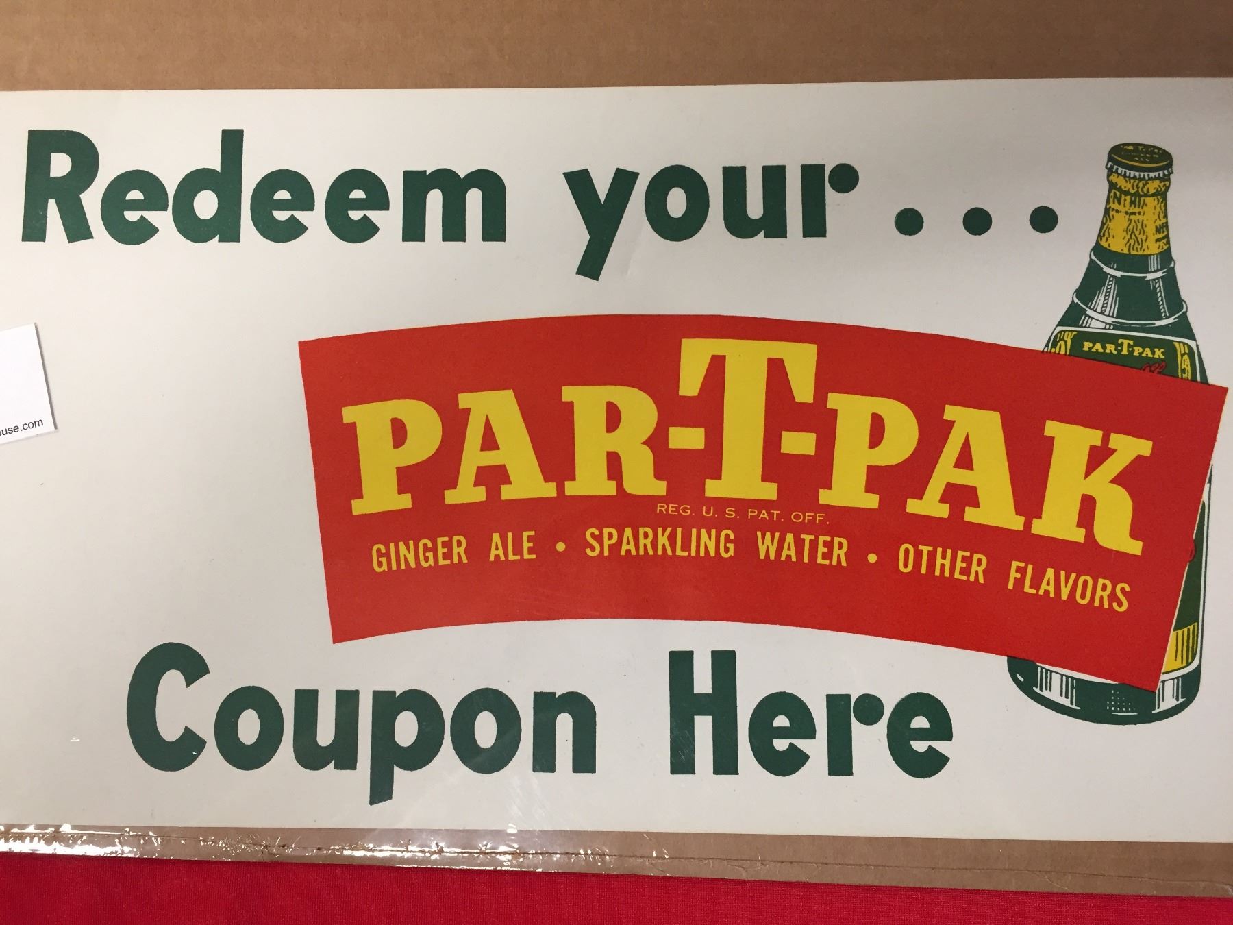 Original Window Sign. Unused Condition 1940's Par-T-Pak Ginger Ale Sparkling Water