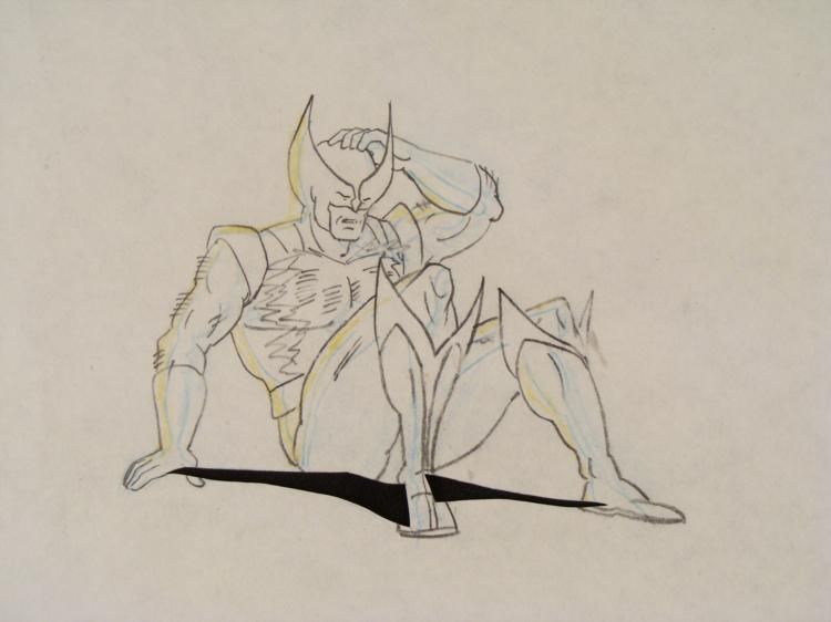 Under a cloud of increasing anti-mutant sentiment, Professor Xavier creates a haven at his Westchester mansion to train young mutants to use their powers for the benefit of humanity, and to prove mutants can be heroes. Xavier recruited Cyclops, Iceman, Angel, * Beast and Jean Grey calling them "X-Men" because they possessed the "x-gene", an ability normal humans lacked. Early issues introduced the team's arch enemy, Magneto and his Brotherhood of Evil Mutants, who would later battle the X-Men for years. * * Ughhhh, what-what, happened?? * * * * * Original "rough" animation drawing, in non-photo blue, black pencil, and yellow, with the notations in black. * * Overall size is a 12-field drawing that is 10 1/2" × 12 1/2" * Excellent condition * Traditional animation is a multi-step process which includes various types of art techniques. Drawings are a key part of the process, in which the animator creates the design and movement of the characters. Drawings are then transferred onto acetate cels * (by hand-inking and/or photo copying) to create a production cel, which is then hand painted on the back side, using paint colors chosen and approved by the creator of the series. * * * This drawing is ready to framed and matted. The animator's notations are shown at the bottom of the drawing. The drawing comes in a protective sleeve. Part of the drawing has been cut out * * * * *