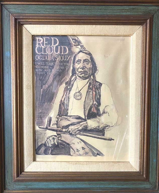 Original artwork for the magazine, “Red Cloud”. The artist is unknown and looks to be 30-60 years old or older. Est.: $150-$300.