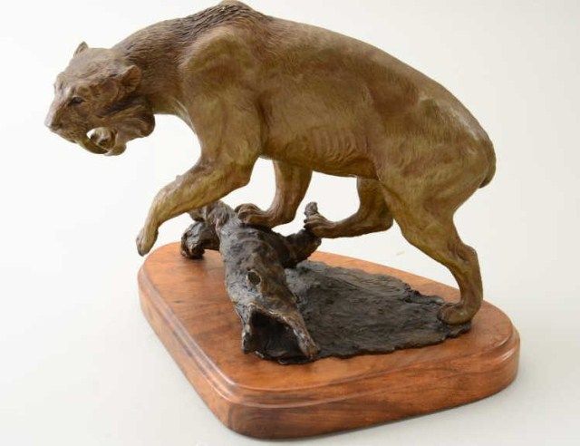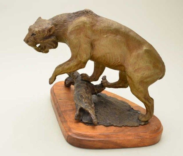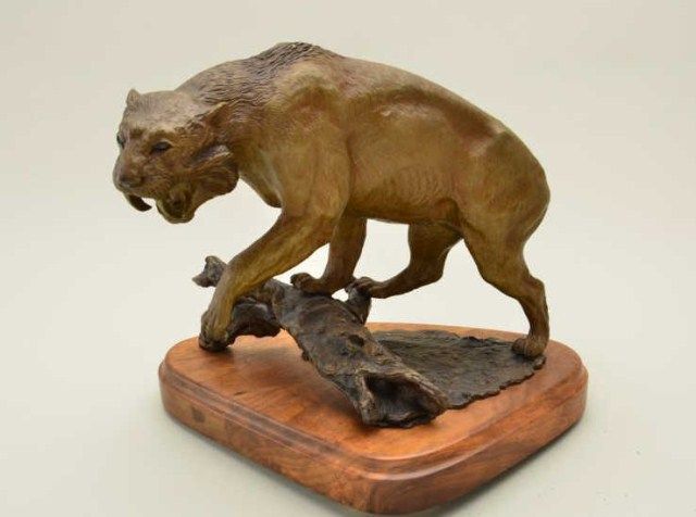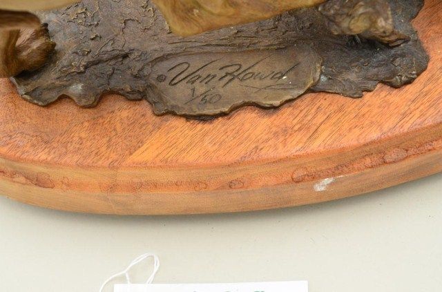 Original bronze of sabre tooth tiger one of only fifty measuring 10” in height not including base. Signed Doug Van Howd. Doug Van Howd is one of California’s most recognized artists and Robert Petersenactively collected his works. Est.; $1,250-$2,500