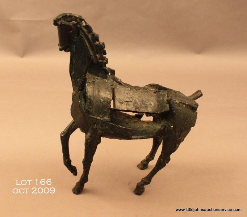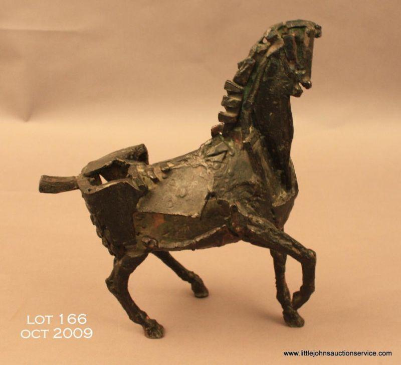 Original bronze statue of horse in modernist style by Venancio of Spain reminiscent of Picasso and Dali. Approx. 12" high by 10 1/2" long and signed. This bronze was the property of legendary film star John Wayne and it was gifted to TomKane longtime Bat jac employee by Michael Wayne at the time of Wayne's death. Certificate of authenticity from Nina Kane executrix of Kane's estate memoralizing these details. Est. $600 - $1,200