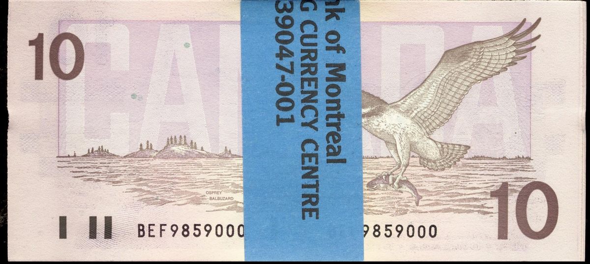 Original bundle of 1989 $10 BEF. BC-57c. 100 notes all Gem Unc.