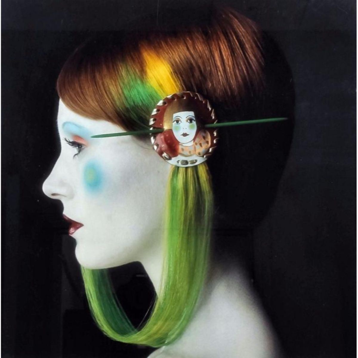 Original, early 1970's Barry Lategan ( born 1935 ) color photograph. Shoulder length profile, the portrait of a young girl with colored hair & an artistic hair tie. 15 1/2" X 15 1/2". Â