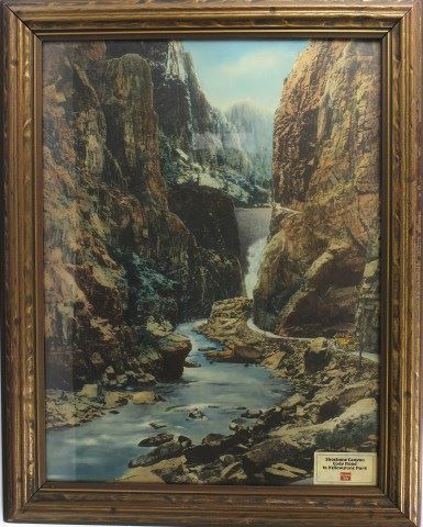 for Shoshone Canyon Cody Wyoming to Yellowstone Park Burlington Railway in original period frame, image 16" X 21". Est. 150-275