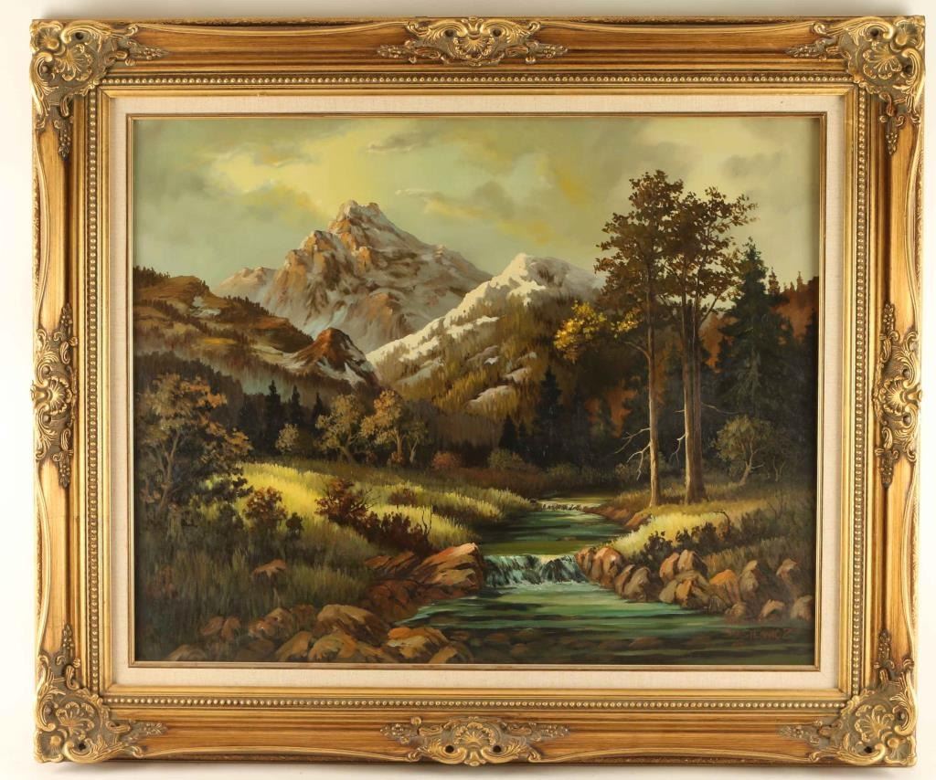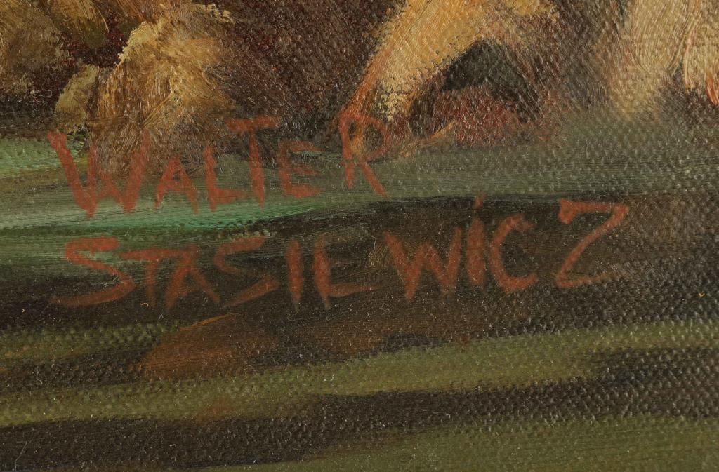 by Walter Stasiewicz, signed lower right hand corner, framed 38x32 in gold gilt frame depicts a country side mountain scene.