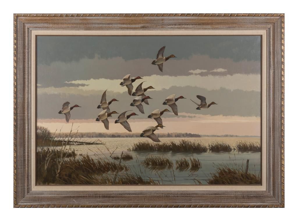 Original oil on canvas signed lower center “Le Blanc”, approx. 24” x 35-3/4”; No. 51 on stretcher, probably for illustration or print; slight compressions in need of $200 conservation to bring up to excellent. Est.: $500-$1,000.