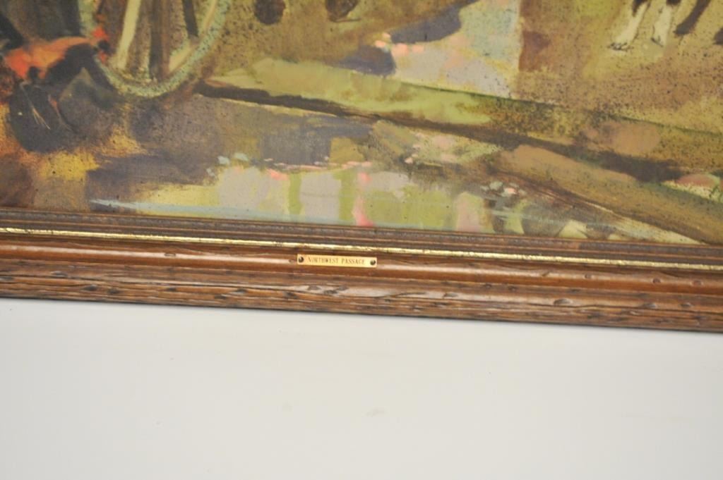 Original oil on canvas signed lower right “Boyle ‘79” and entitled “North West Passage”. Nicely framed with no condition issues. Measures approximately 40” x 40”. A major work. Neil Boyle was born 1931 and died 2006. Very highly trained and credentialed artist whose works are in Smithsonian and grew up in Indian country where his father was an honorary chief of the Piegan tribe. Est.: $2500-$5000