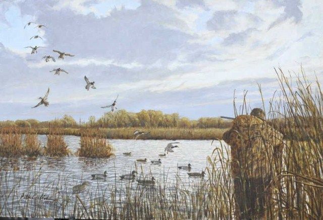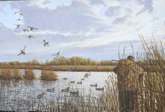 Original oil painting on canvas signed lower left Peter Corbin 1982. Titled on reverse “Totally Committed”. The painting measures approx. 20”x30” unframed. There is some minor damage at edges that were covered by frame.Otherwise in fine condition. From the Estate of Robert E. Petersen. Est.; $750-$1,500
