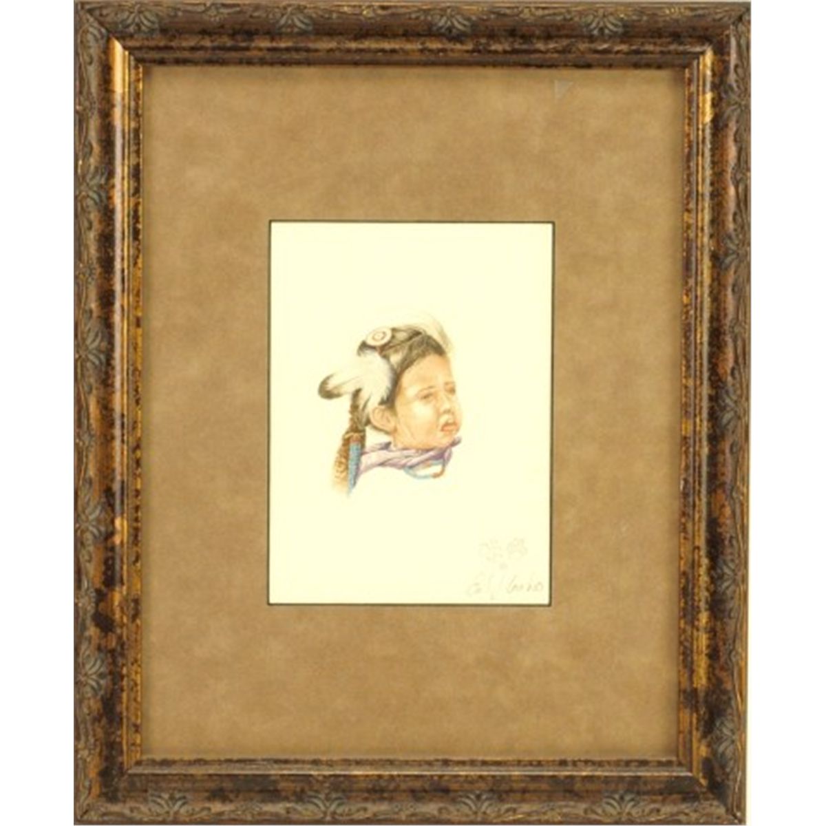 Original painting of Navajo child by Earl J Cache, image 5 1/2" X 7 1/2'.