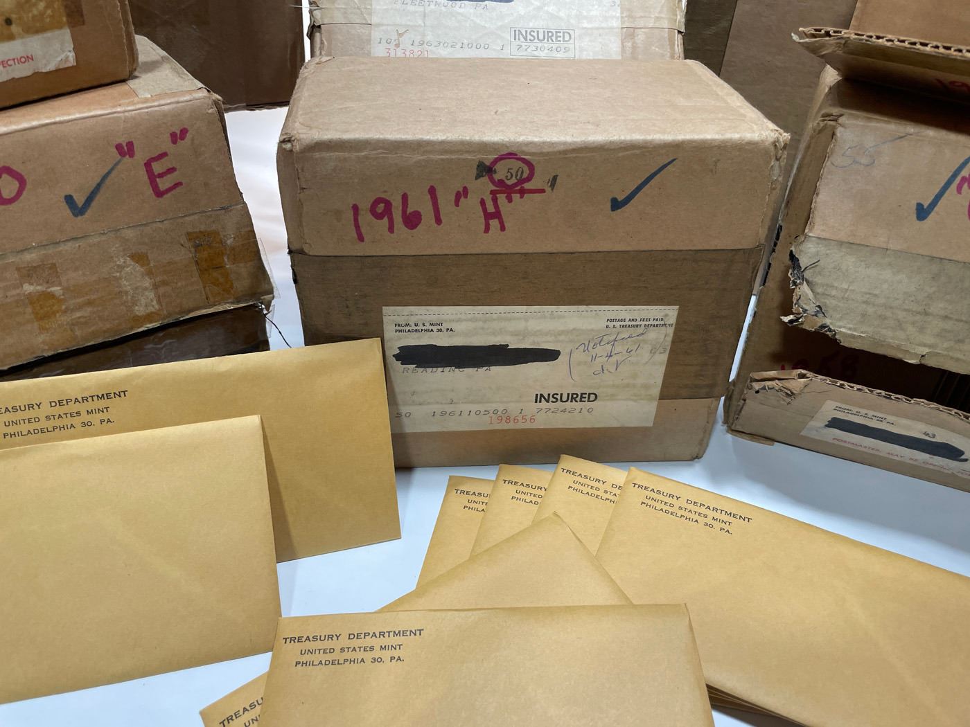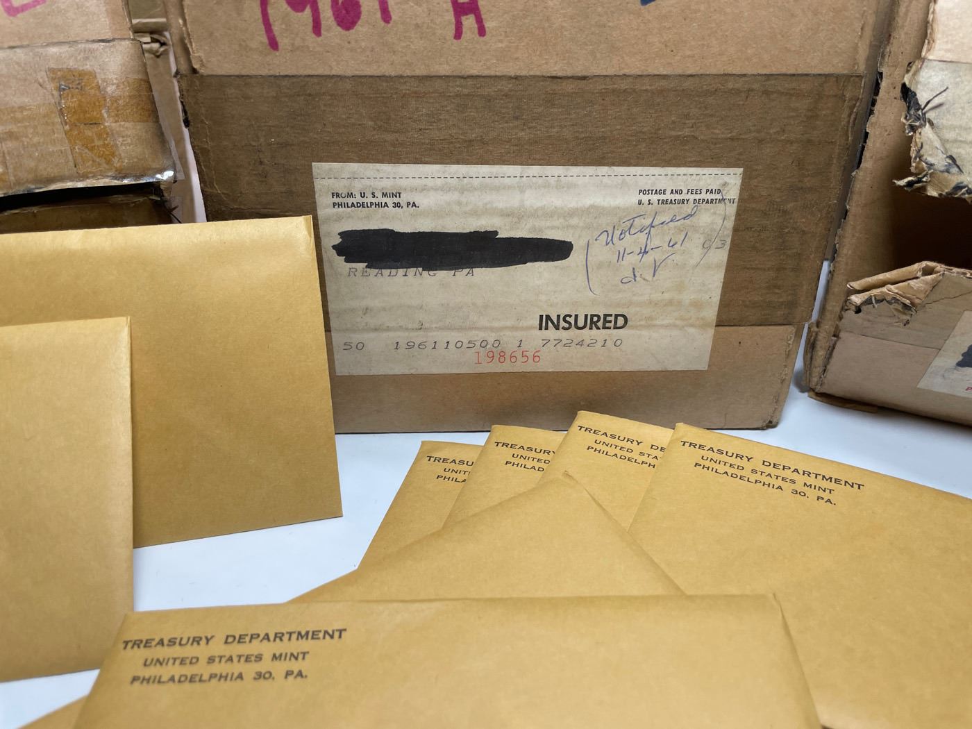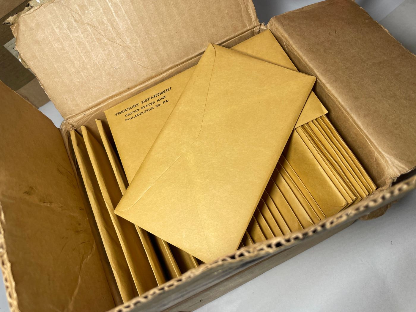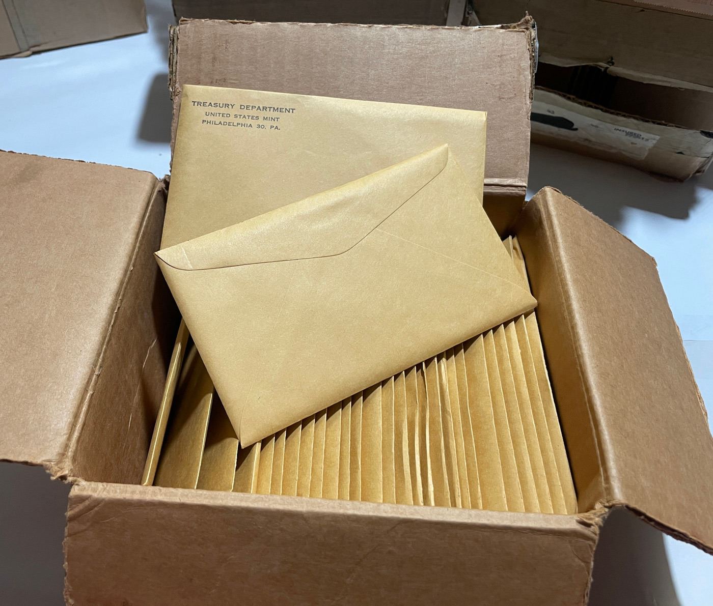 Original sealed 1956 United States Mint Proof Set Tennessee Valley Hoard. Once in a lifetime collection We are proud to bring to auction the greatest proof collection of the late 1950s and early 1960s. This collection may contain some of the only unopened mega boxes of unopened proof sets still in existence. In all my years in numismatics I have never seen a collection like this one. The collection includes 3 unopened mega boxes as well as approximately 7 mega boxes that have been carefully opened but the sets inside remain pristine and unopened as they were when they left the philadelphia mint over a half century ago. Finding cameo and deep cameo proofs from this era is near impossible u less you pay full retail and buy them already holdered. All of the sets at coin shows have been examined and have virtually no cameos. The only way to get the same odds of finding one of these valuable cameos is to buy an unopened set. Many sets today that are purported to be unopened have a actually been opened and resealed or put into a fresh envelope and sealed. This 100% original lot is guaranteed to be unopened from the day it left the mint. We will cover your laboratory costs and pay you 10x your cost of the set if the carbon dating on this set shows that the glue is not from the late 1950s 1960s. A true once in a lifetime opportunity
