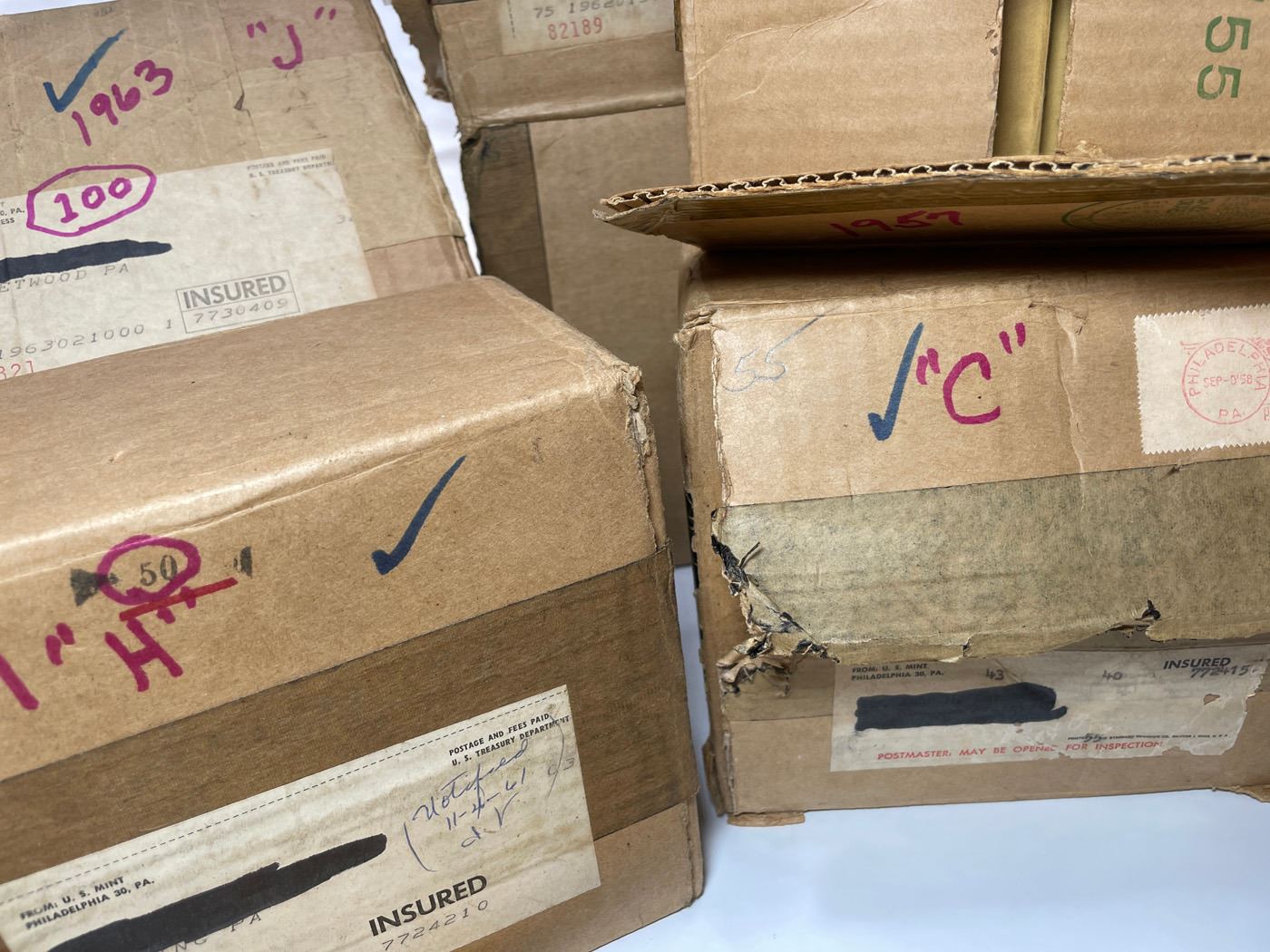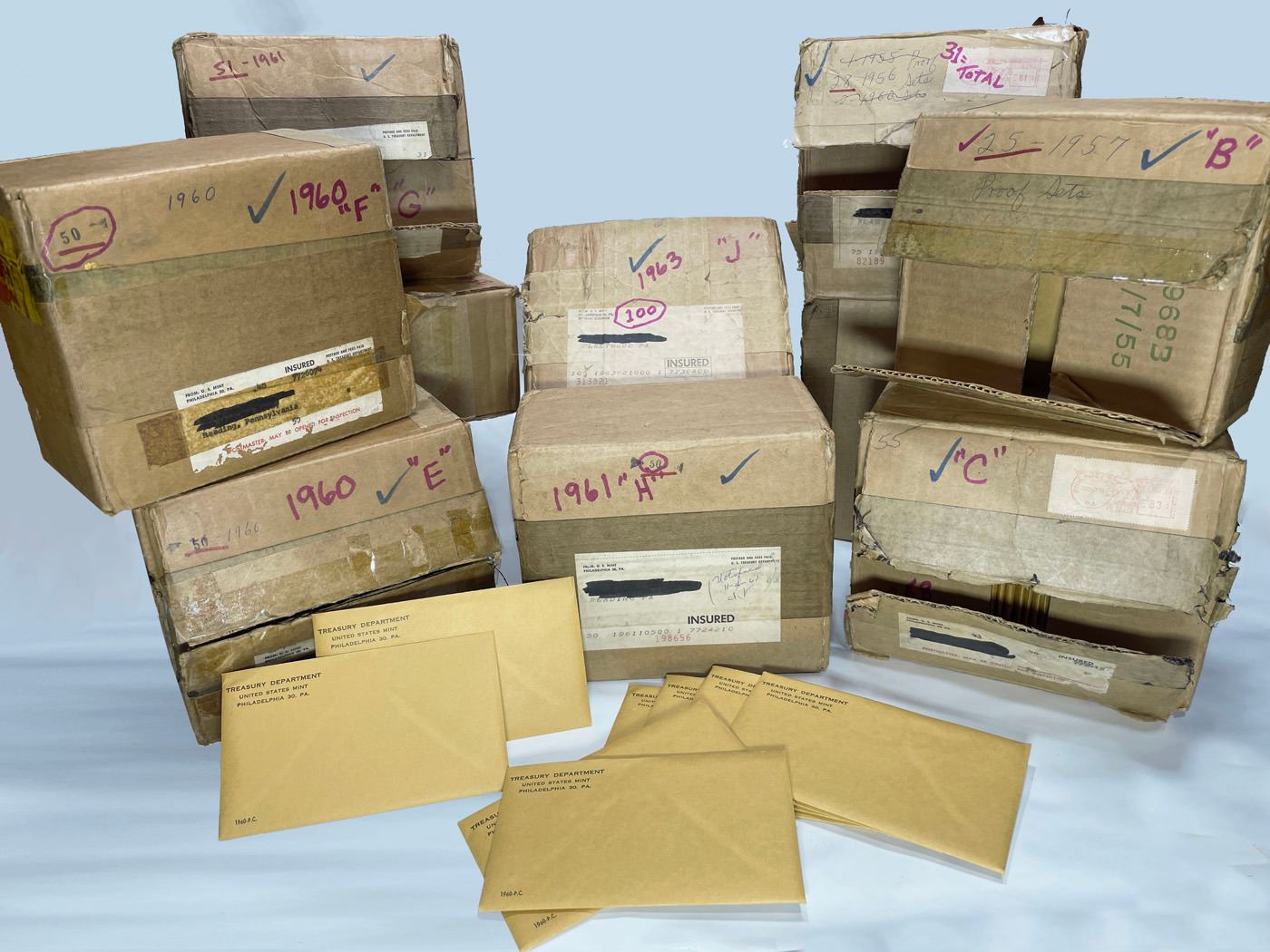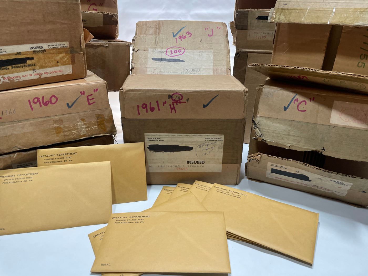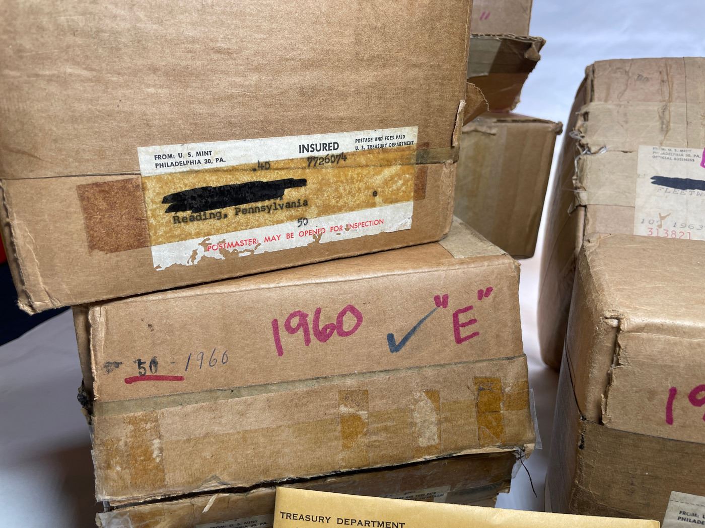 Original sealed 1956 United States Mint Proof Set Tennessee Valley Hoard. Once in a lifetime collection We are proud to bring to auction the greatest proof collection of the late 1950s and early 1960s. This collection may contain some of the only unopened mega boxes of unopened proof sets still in existence. In all my years in numismatics I have never seen a collection like this one. The collection includes 3 unopened mega boxes as well as approximately 7 mega boxes that have been carefully opened but the sets inside remain pristine and unopened as they were when they left the philadelphia mint over a half century ago. Finding cameo and deep cameo proofs from this era is near impossible u less you pay full retail and buy them already holdered. All of the sets at coin shows have been examined and have virtually no cameos. The only way to get the same odds of finding one of these valuable cameos is to buy an unopened set. Many sets today that are purported to be unopened have a actually been opened and resealed or put into a fresh envelope and sealed. This 100% original lot is guaranteed to be unopened from the day it left the mint. We will cover your laboratory costs and pay you 10x your cost of the set if the carbon dating on this set shows that the glue is not from the late 1950s 1960s. A true once in a lifetime opportunity